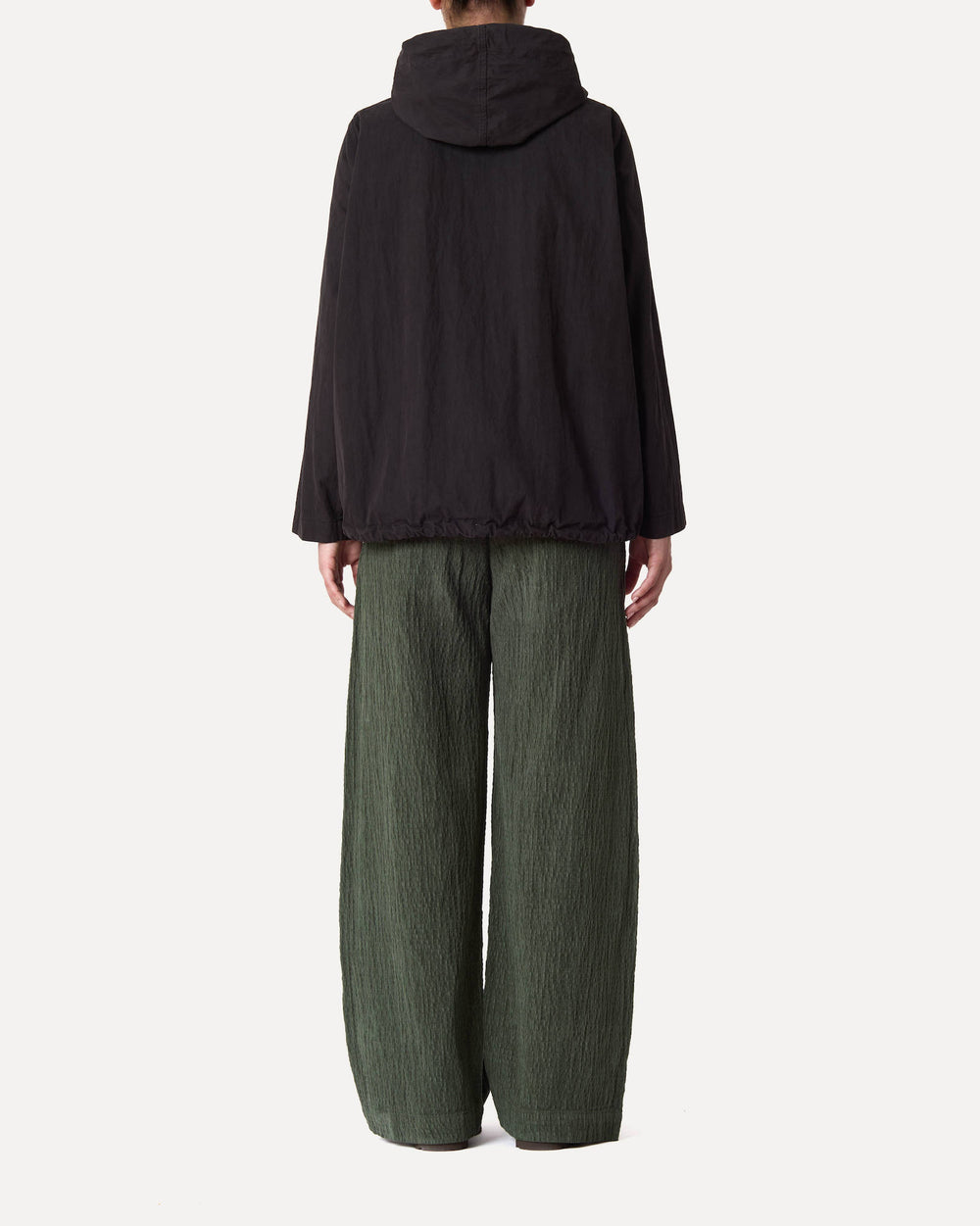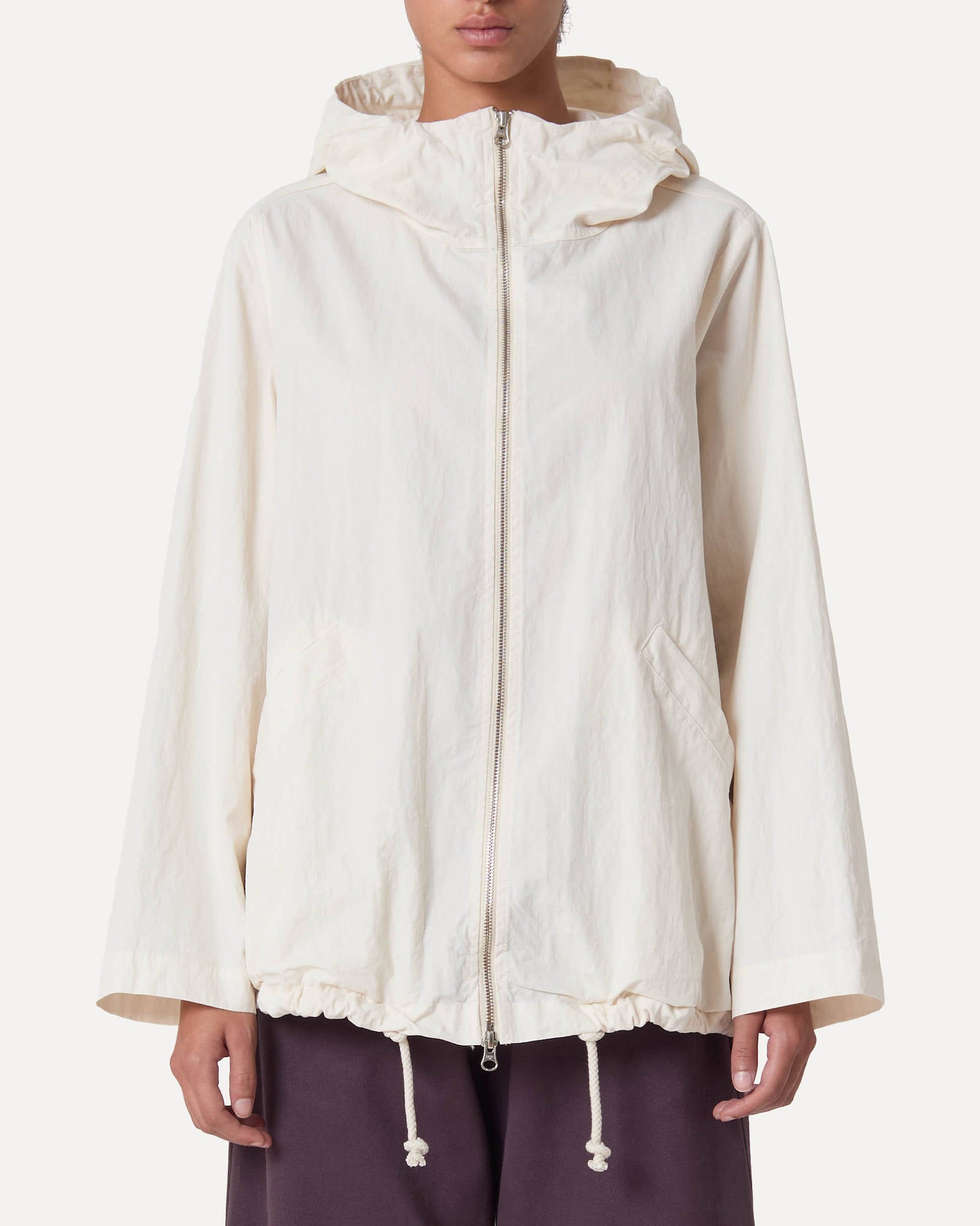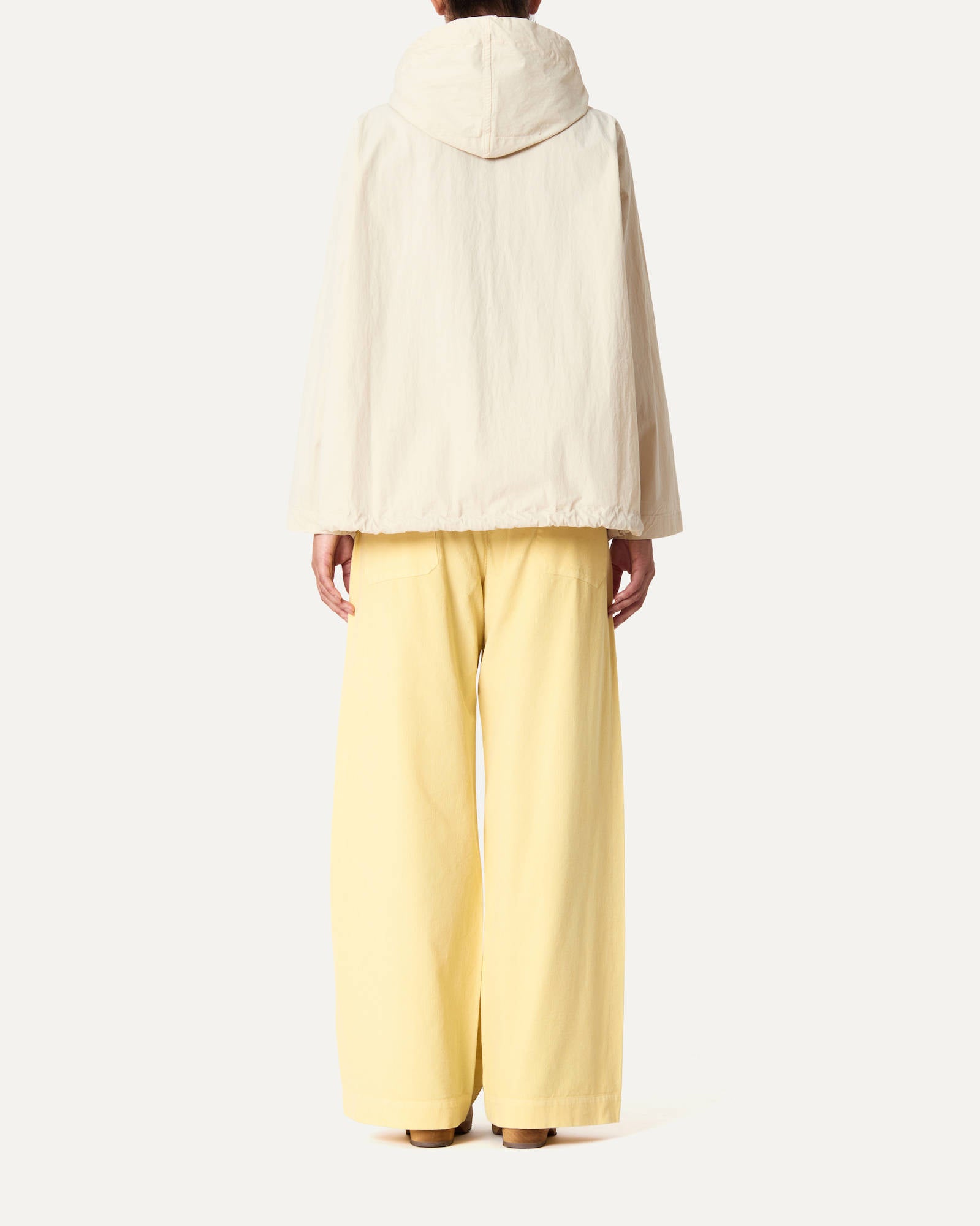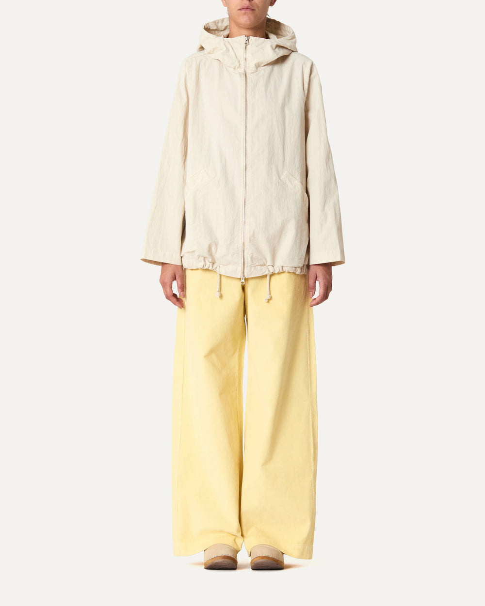 JACKET WITH GATHERED HEM, ZIP CLOSURE, SIDE POCKETS, AND LONG SLEEVES IN CRISPY WOVEN COTTON-NYLON, WATER REPELLENT