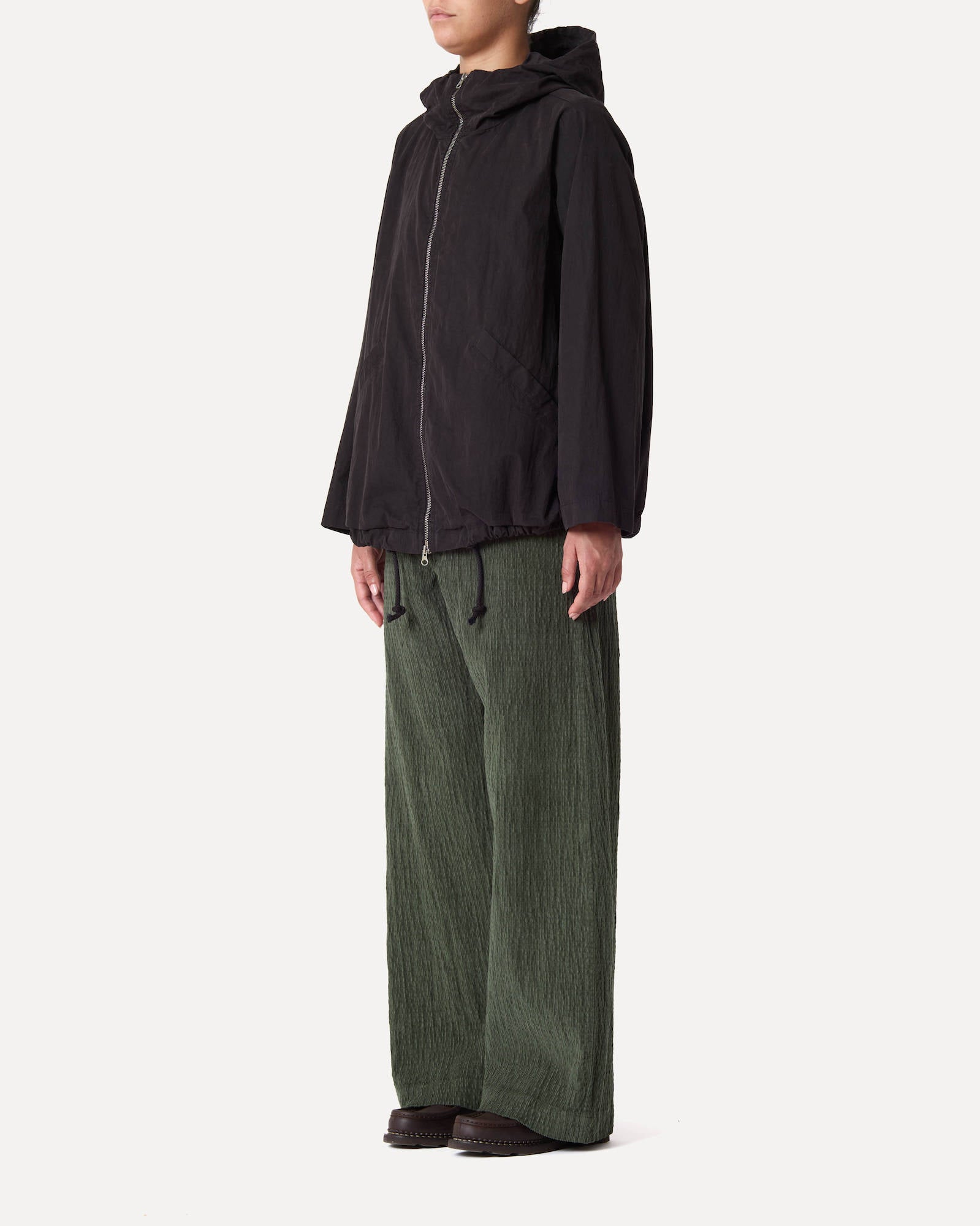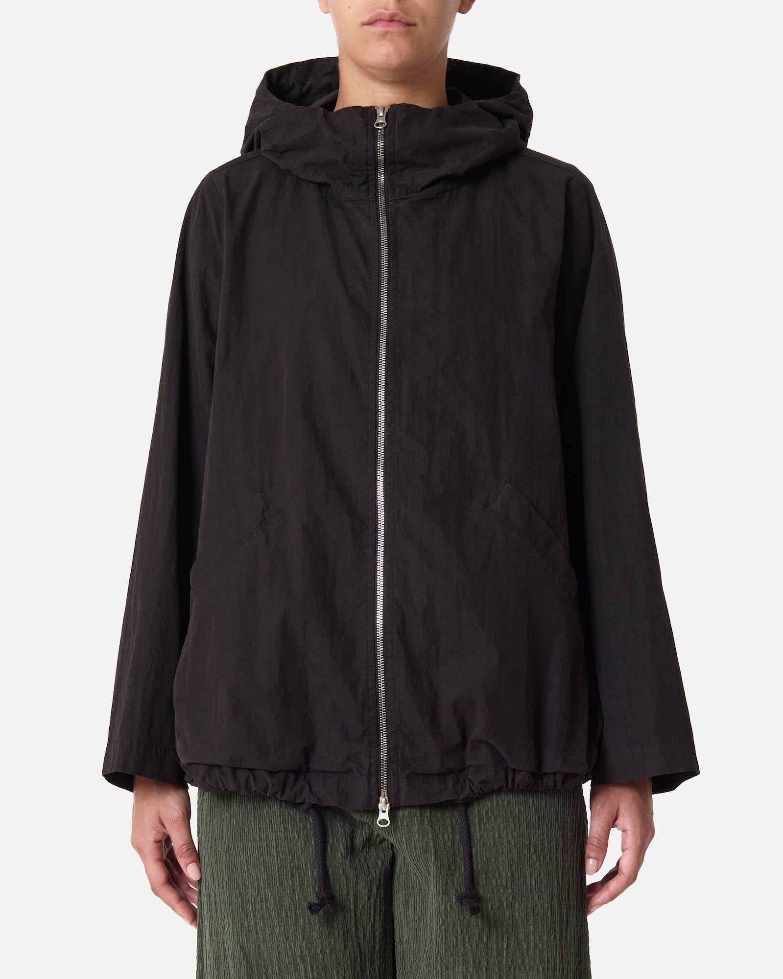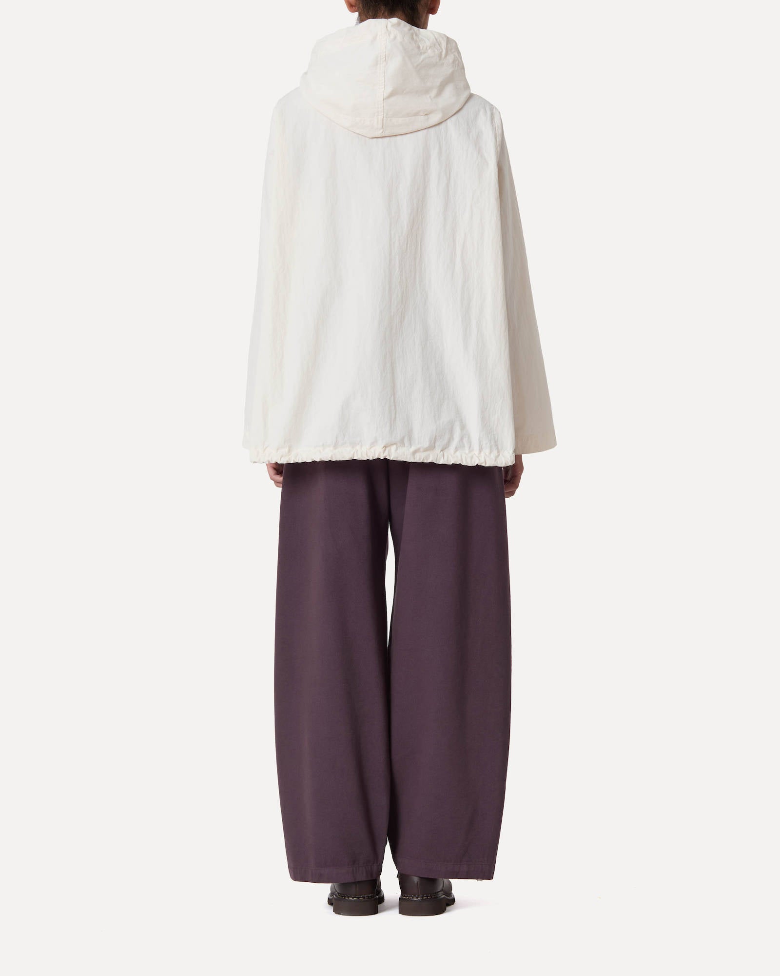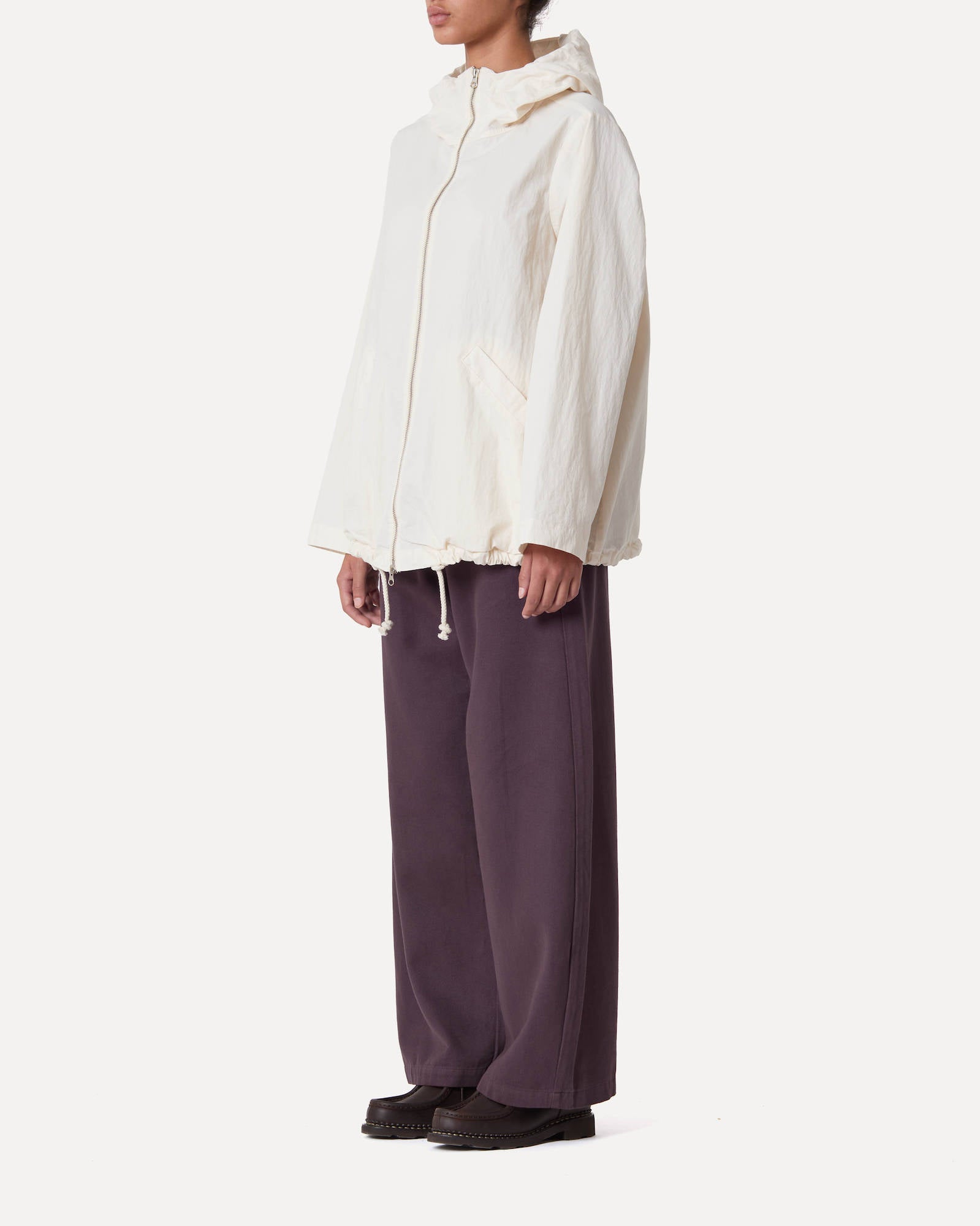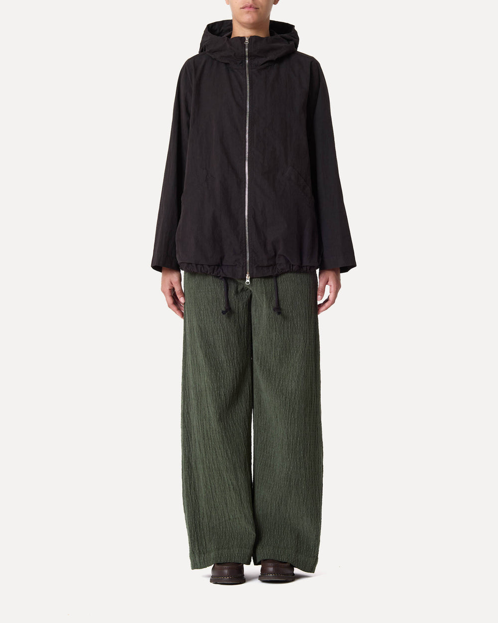 JACKET WITH GATHERED HEM, ZIP CLOSURE, SIDE POCKETS, AND LONG SLEEVES IN CRISPY WOVEN COTTON-NYLON, WATER REPELLENT
