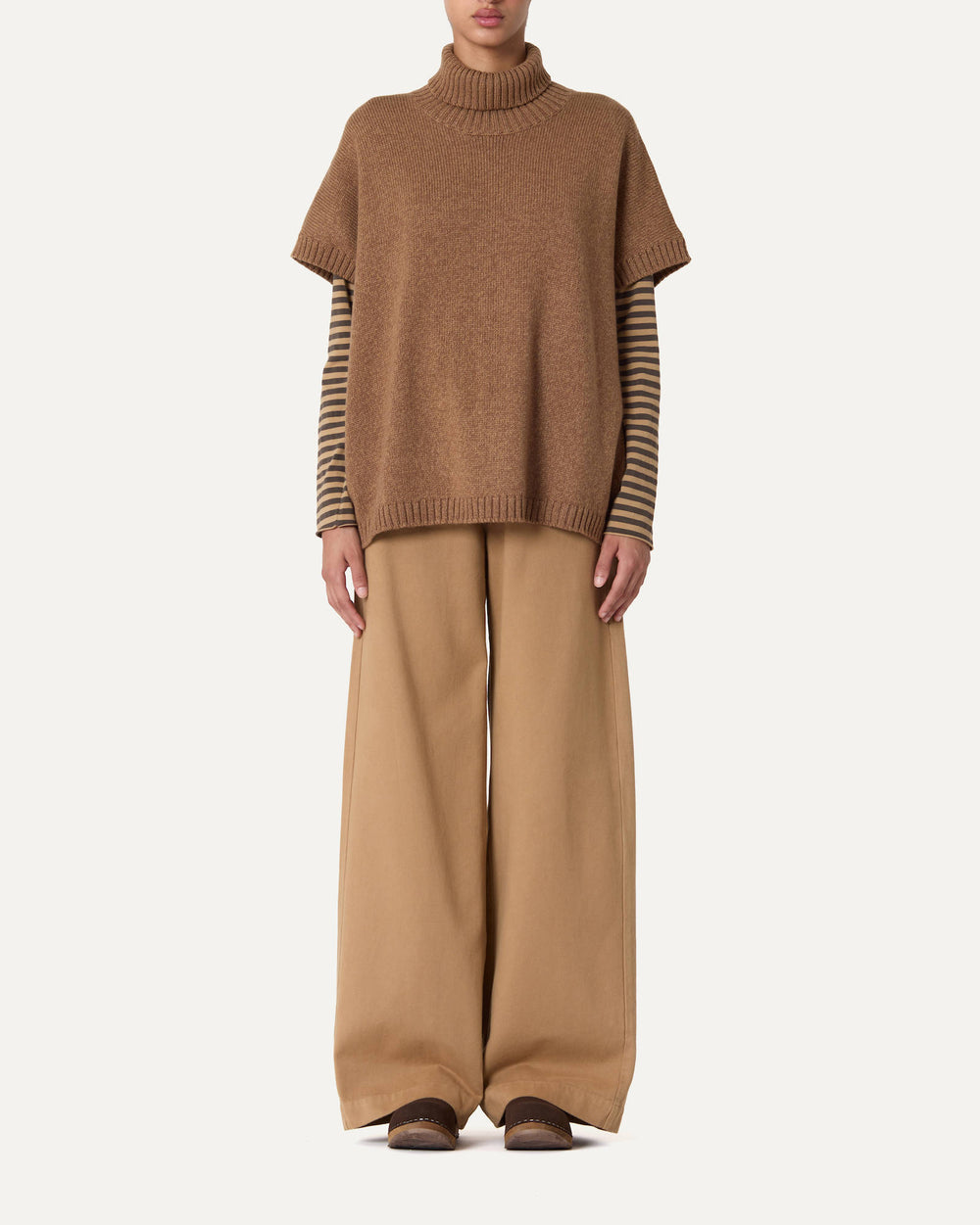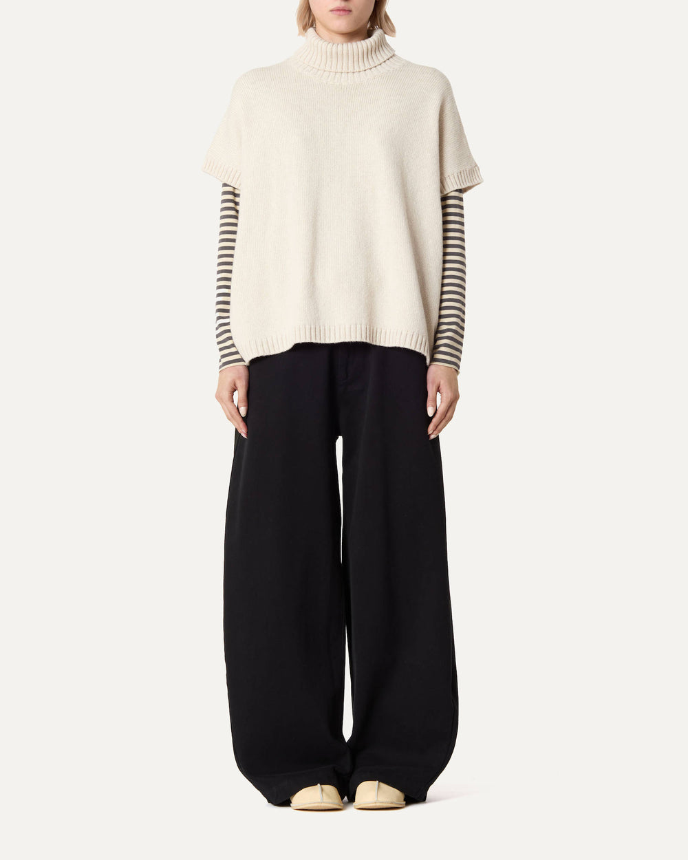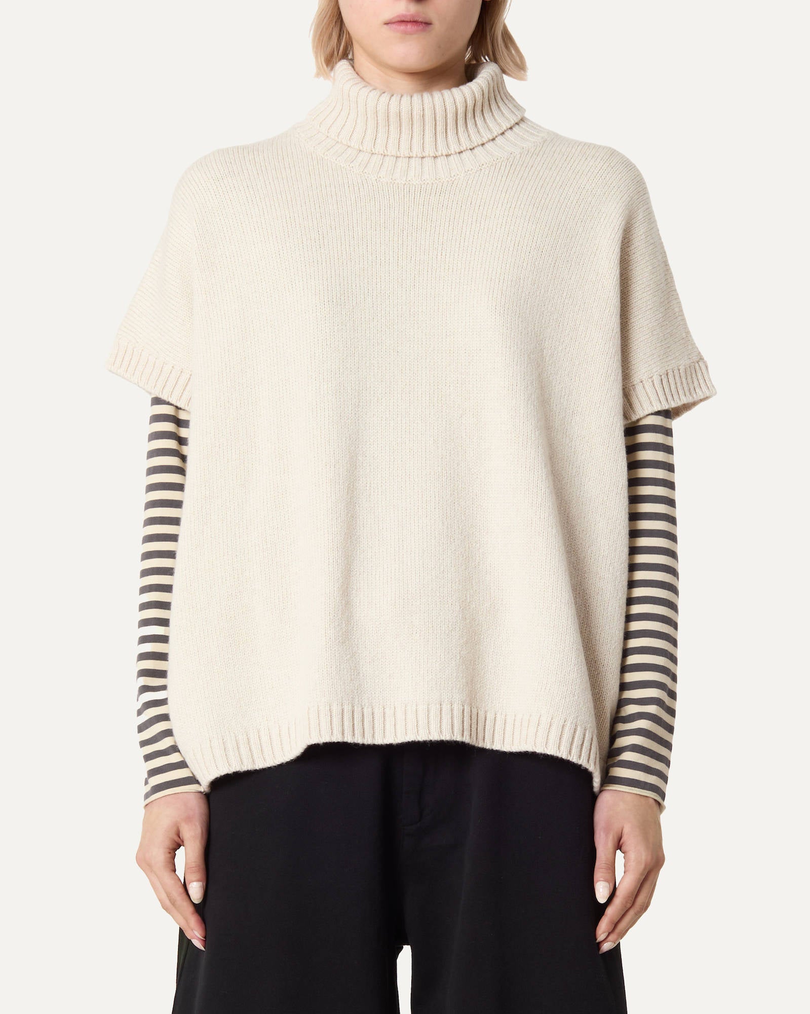 SHORT-SLEEVE KNIT TOP WITH MOCK TURTLENECK