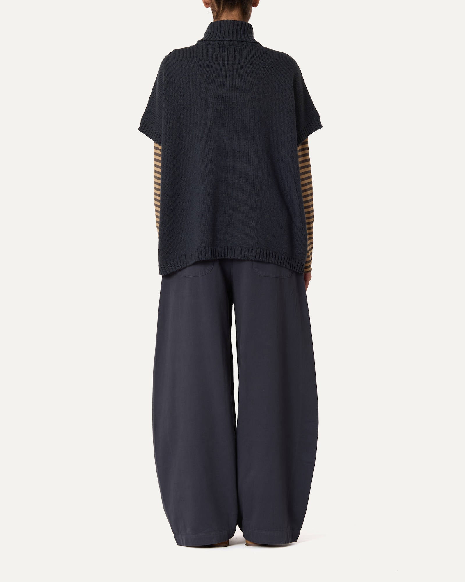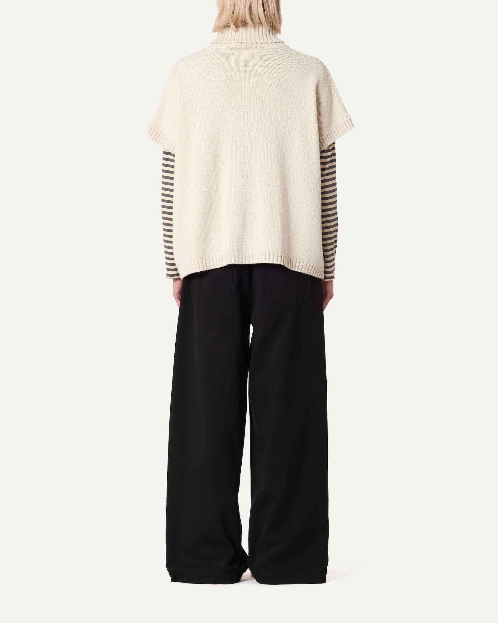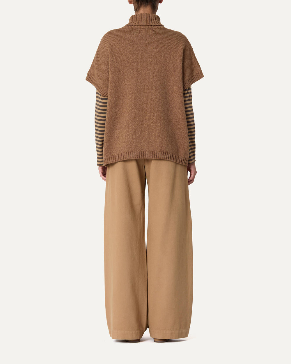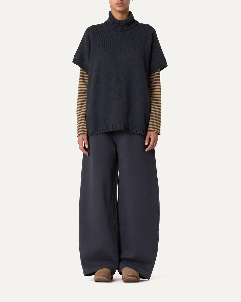 SHORT-SLEEVE KNIT TOP WITH MOCK TURTLENECK