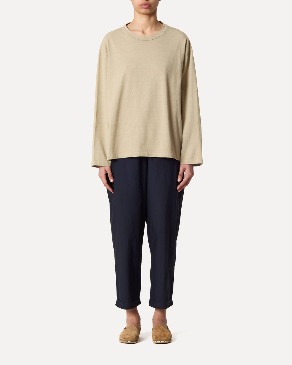 LONG-SLEEVE ROUND NECK TOP IN JAPANESE OPEN-END COTTON JERSEY