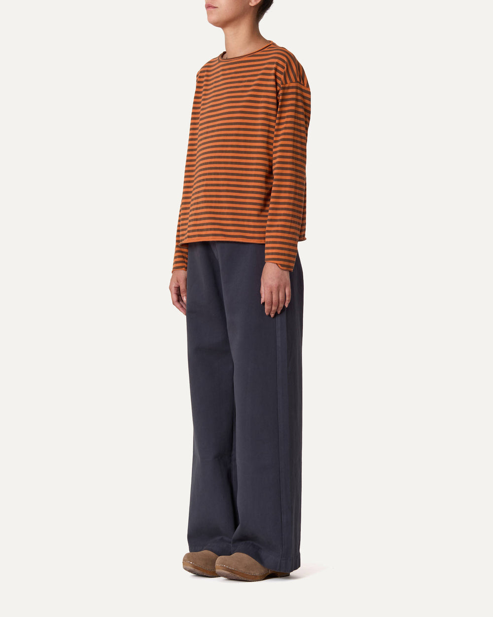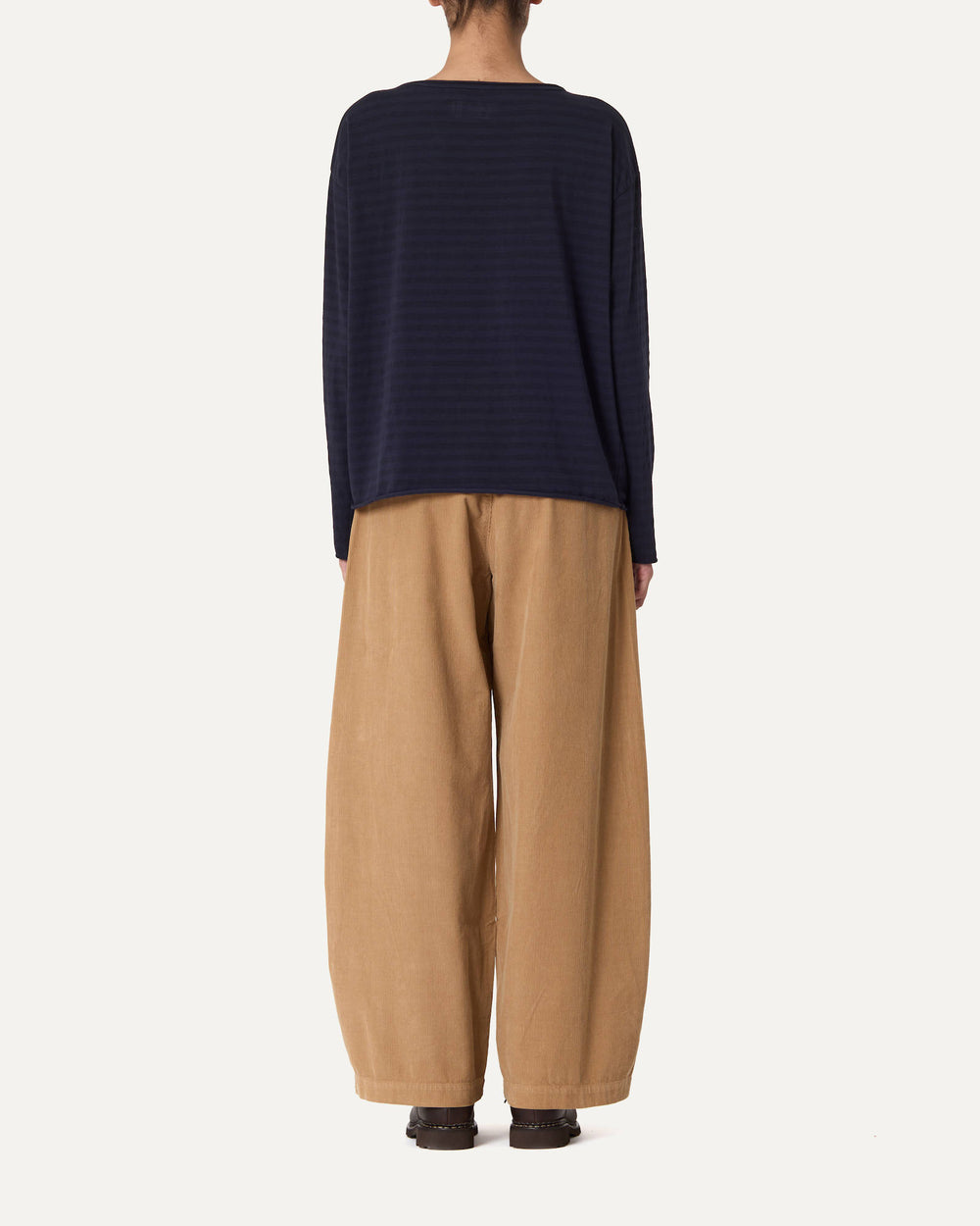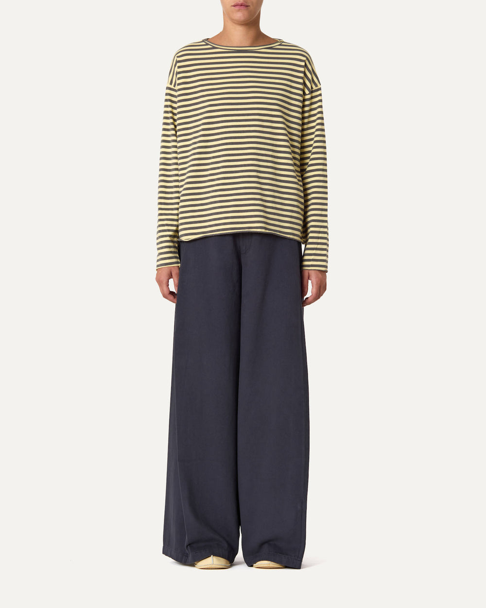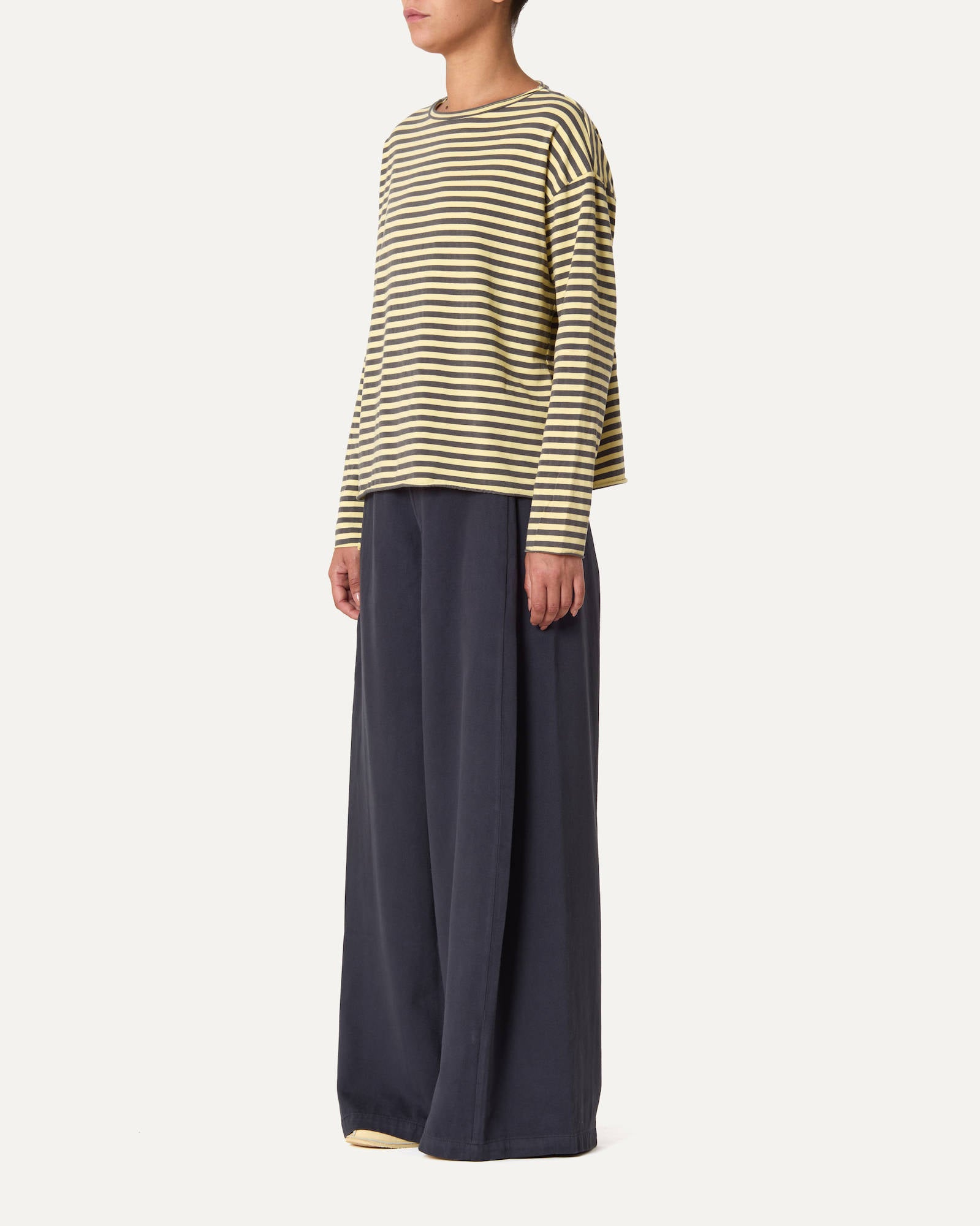 BOXY LONG SLEEVES TOP IN STRIPED ELASTIC COTTON JERSEY FEATURING A GREY STRIPE COMBINED WITH THE SELECTED COLOR