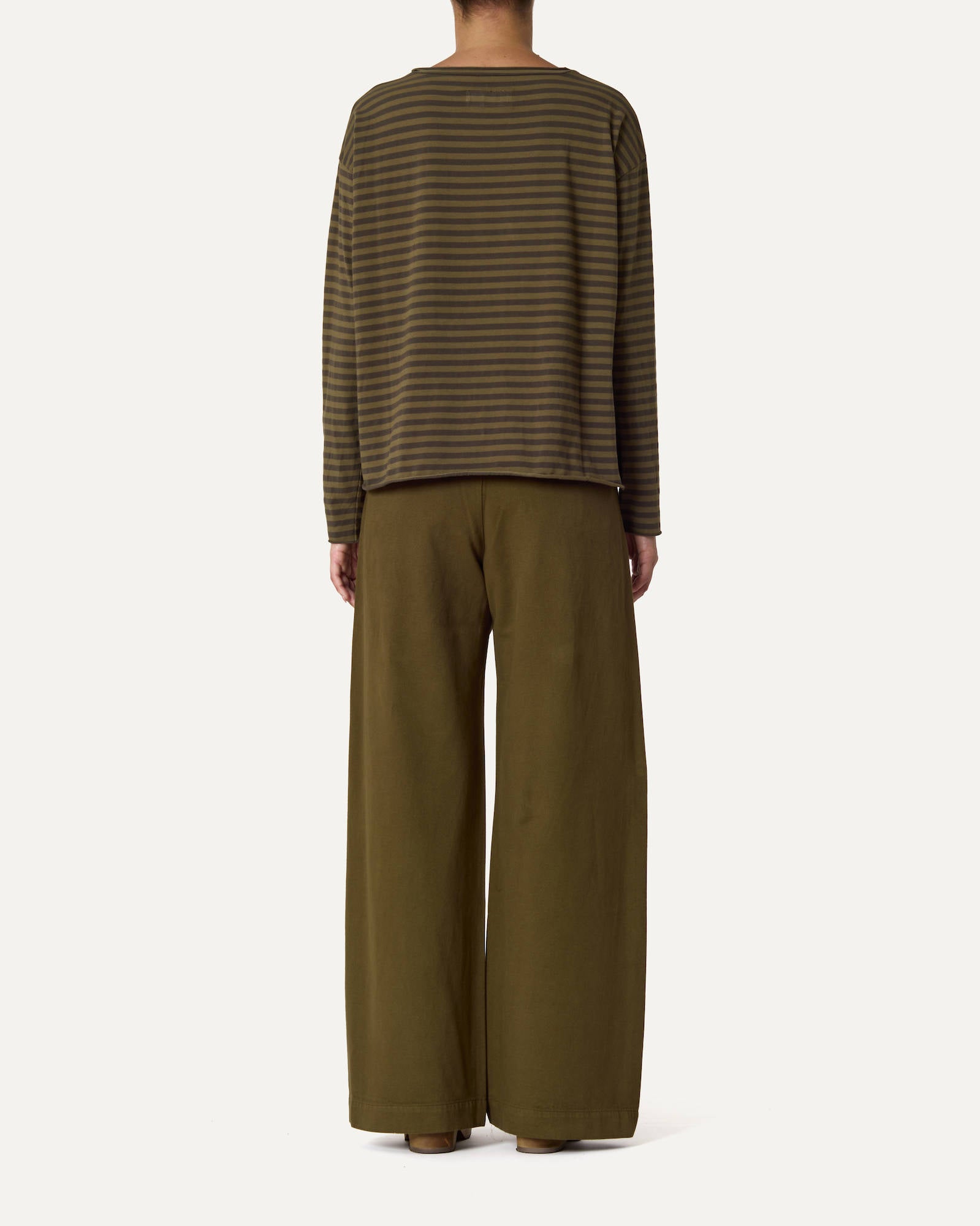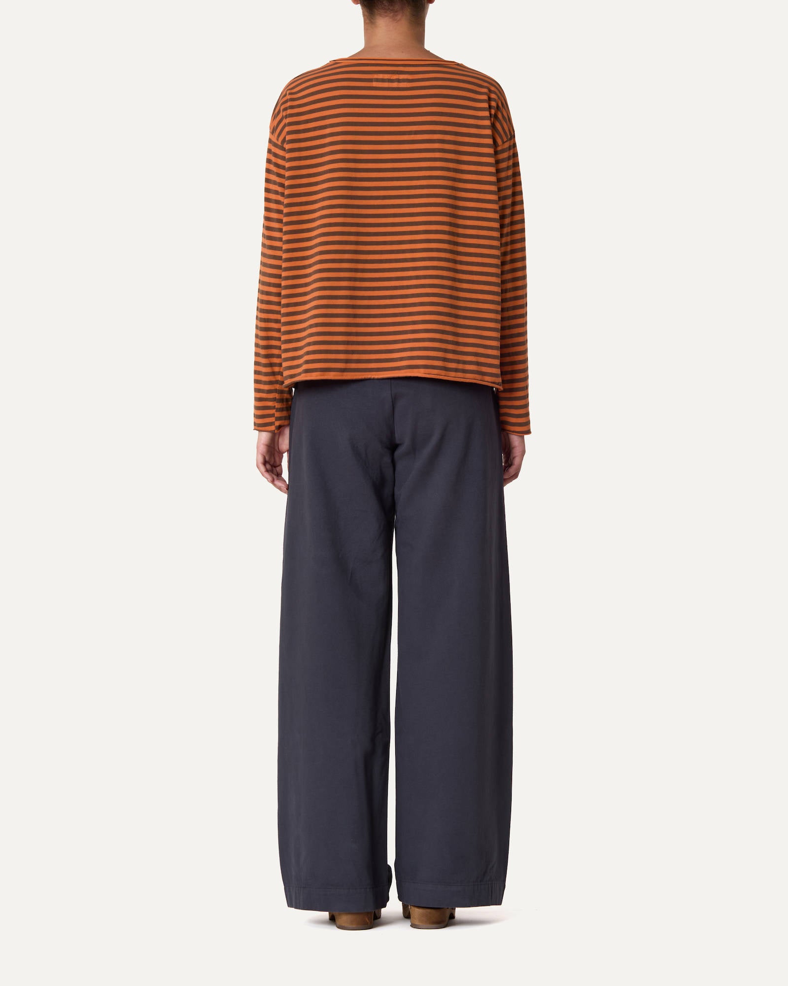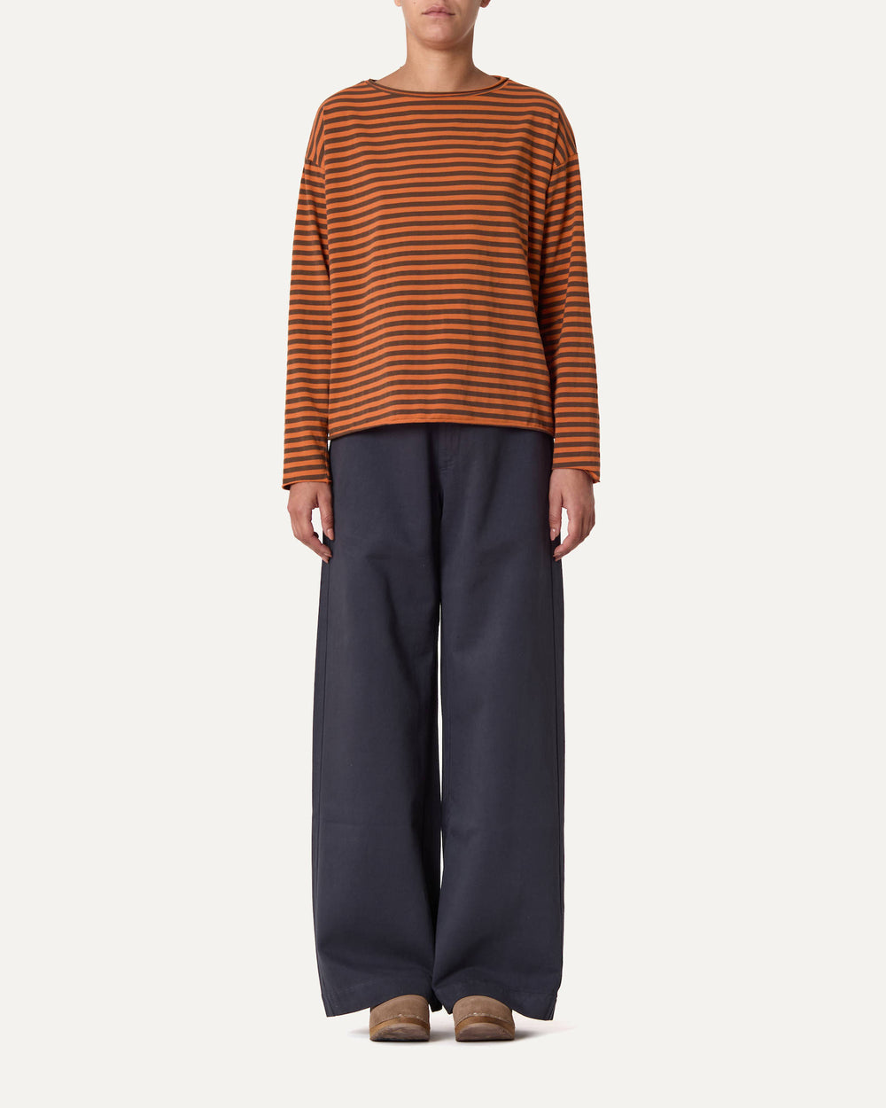 BOXY LONG SLEEVES TOP IN STRIPED ELASTIC COTTON JERSEY FEATURING A GREY STRIPE COMBINED WITH THE SELECTED COLOR