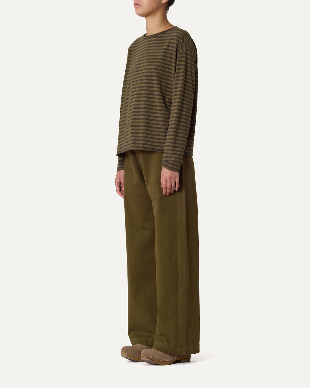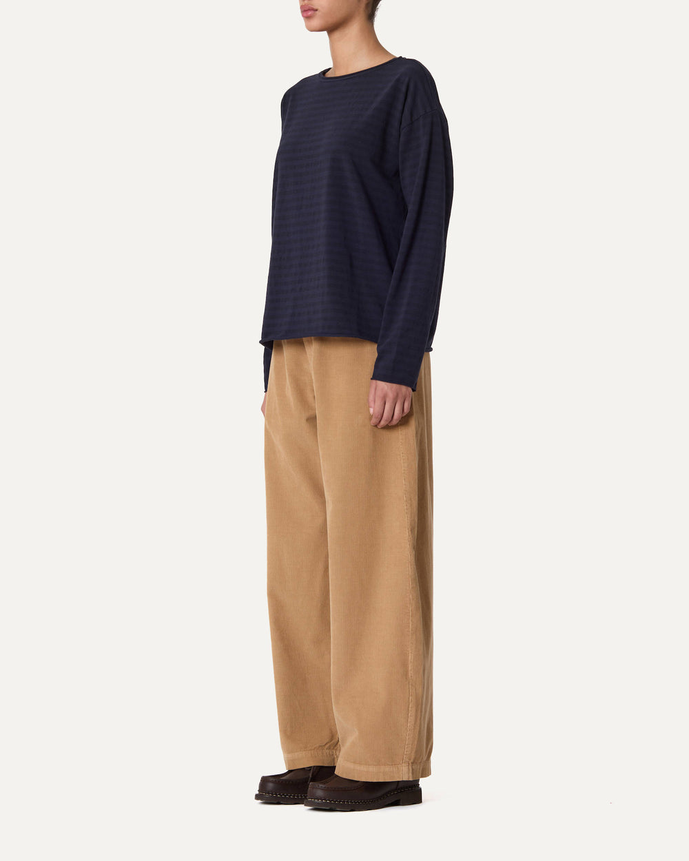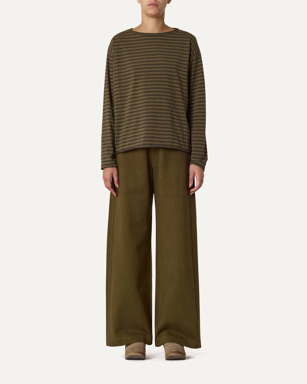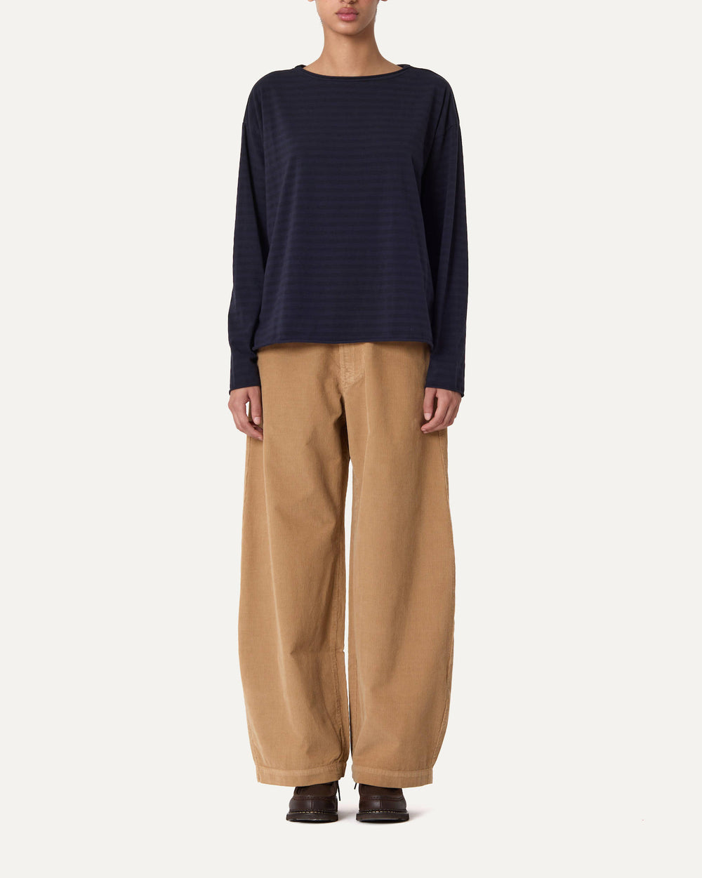 BOXY LONG SLEEVES TOP IN STRIPED ELASTIC COTTON JERSEY FEATURING A GREY STRIPE COMBINED WITH THE SELECTED COLOR