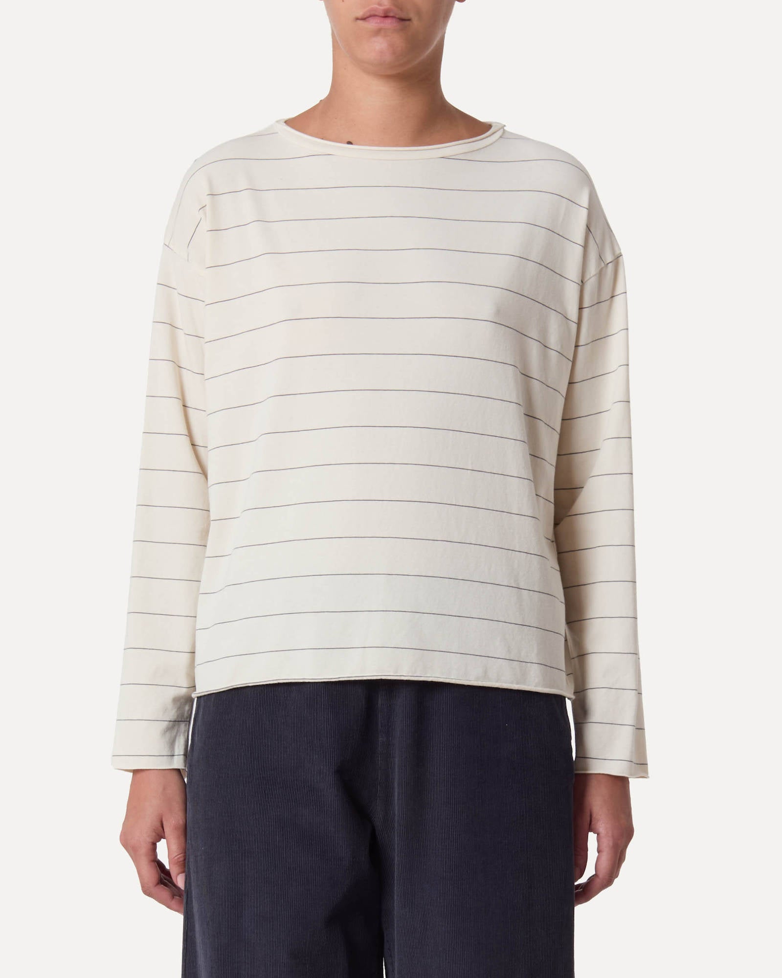 BOXY LONG SLEEVES TOP IN STRIPED ELASTIC COTTON JERSEY