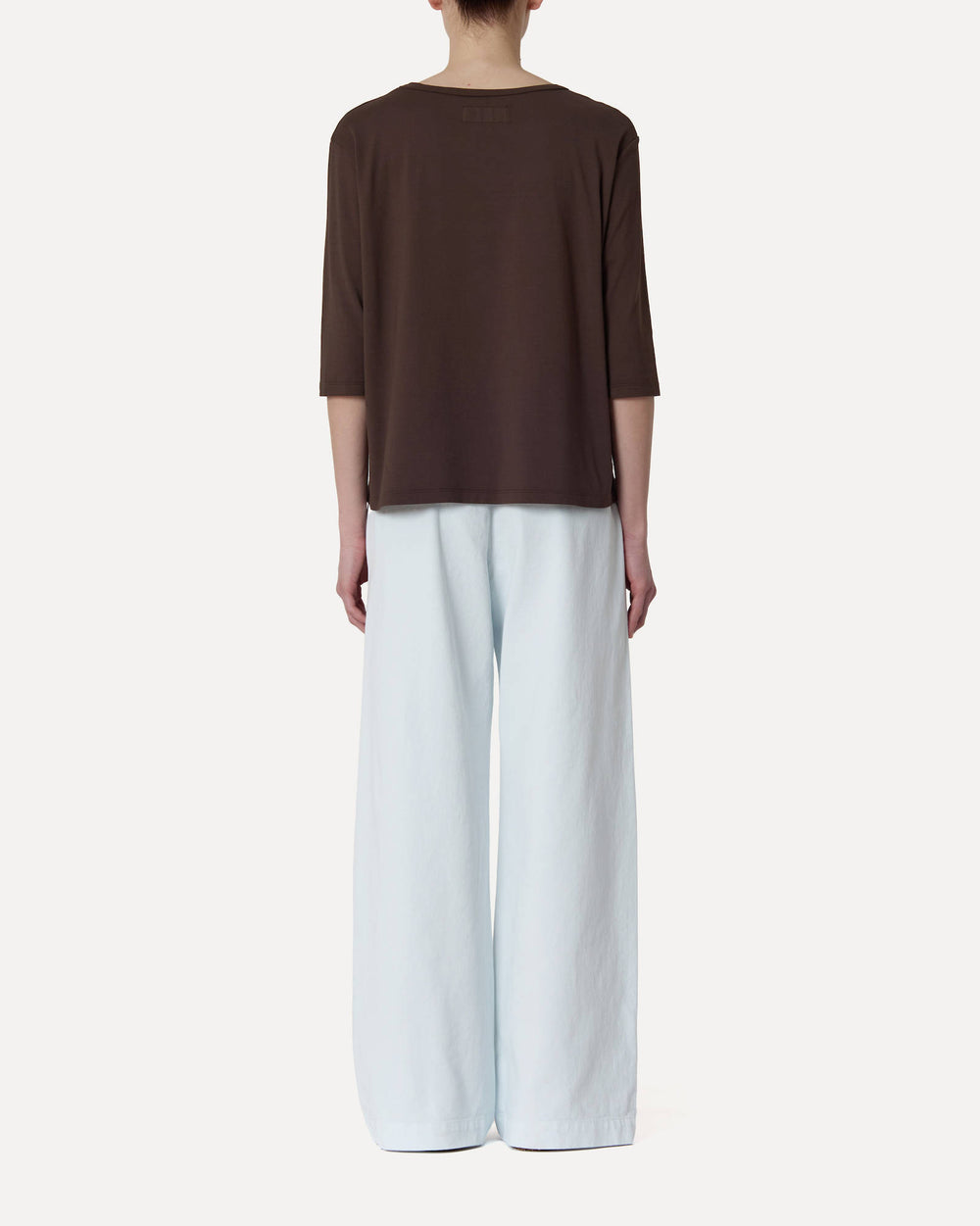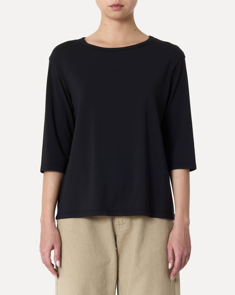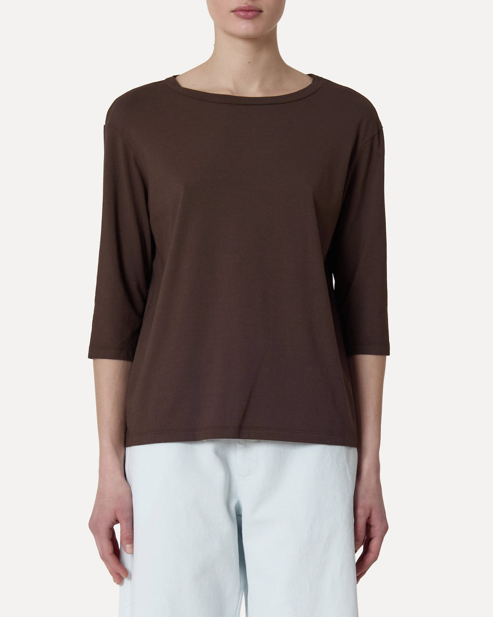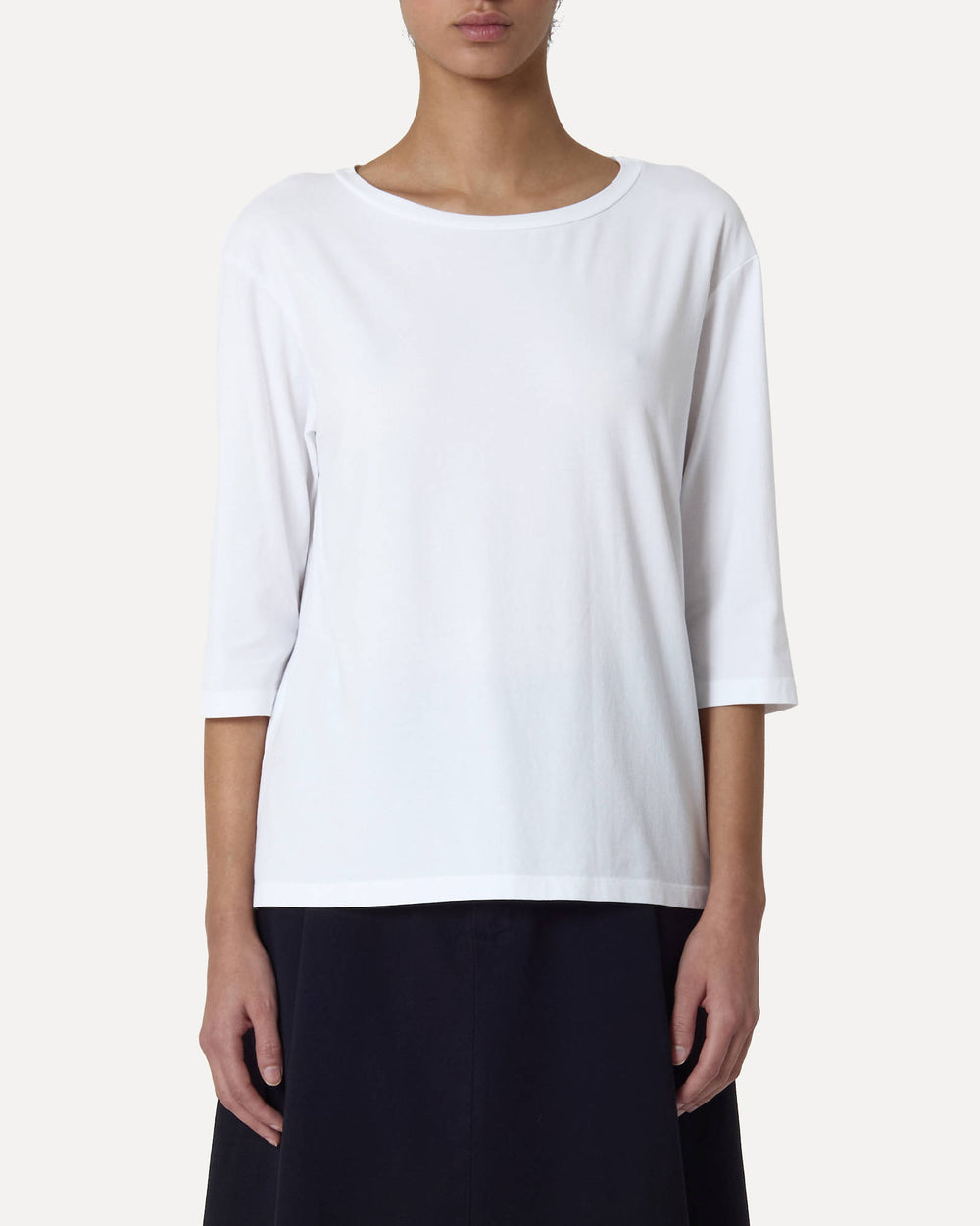 REGULAR FIT T-SHIRT WITH SLIGHTLY DROPPED SHOULDERS, BOAT NECK AND ¾ SLEEVES IN ELASTIC COTTON CREPE JERSEY
