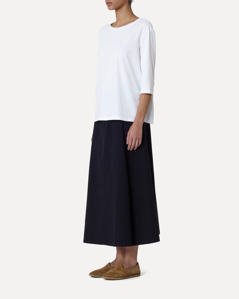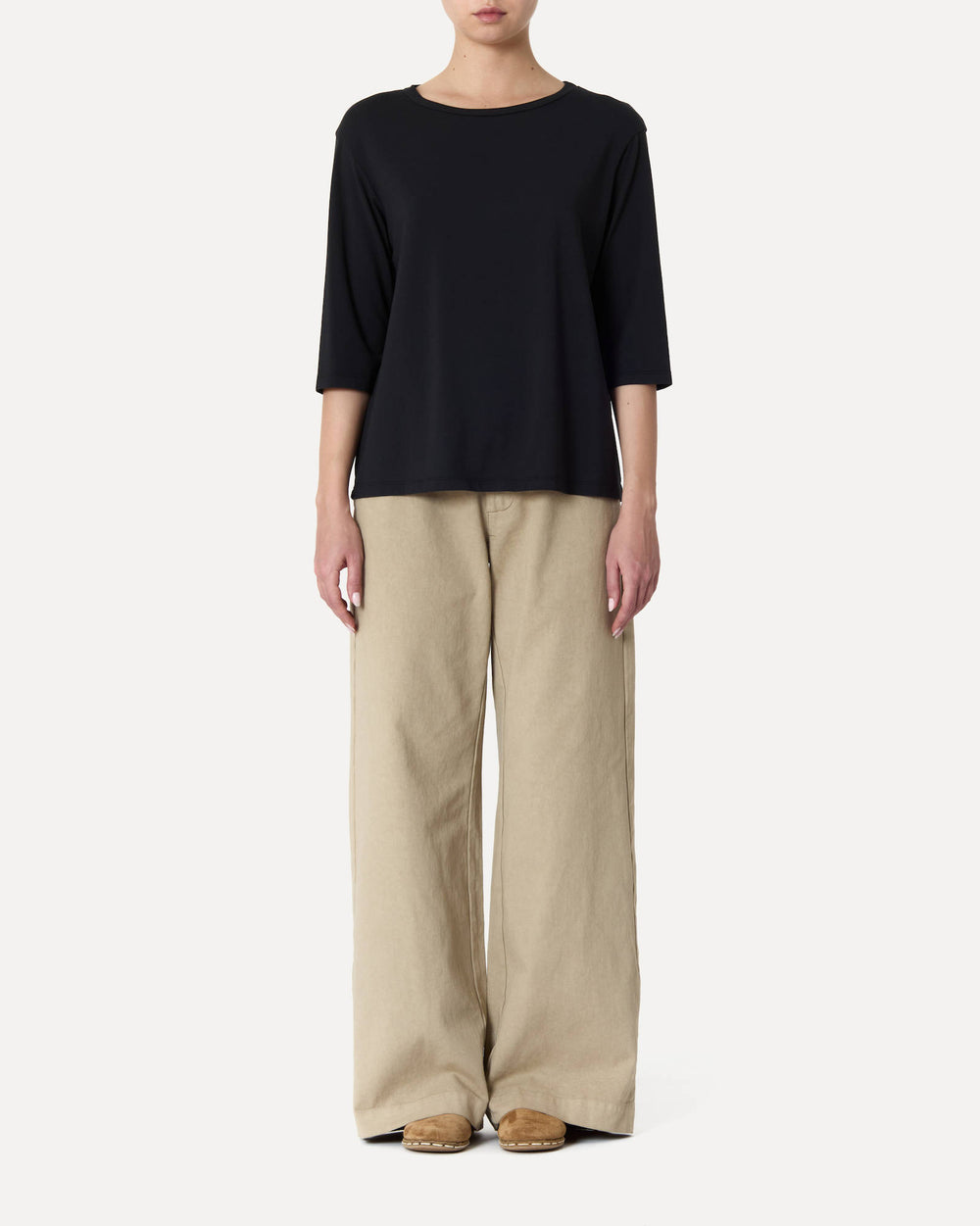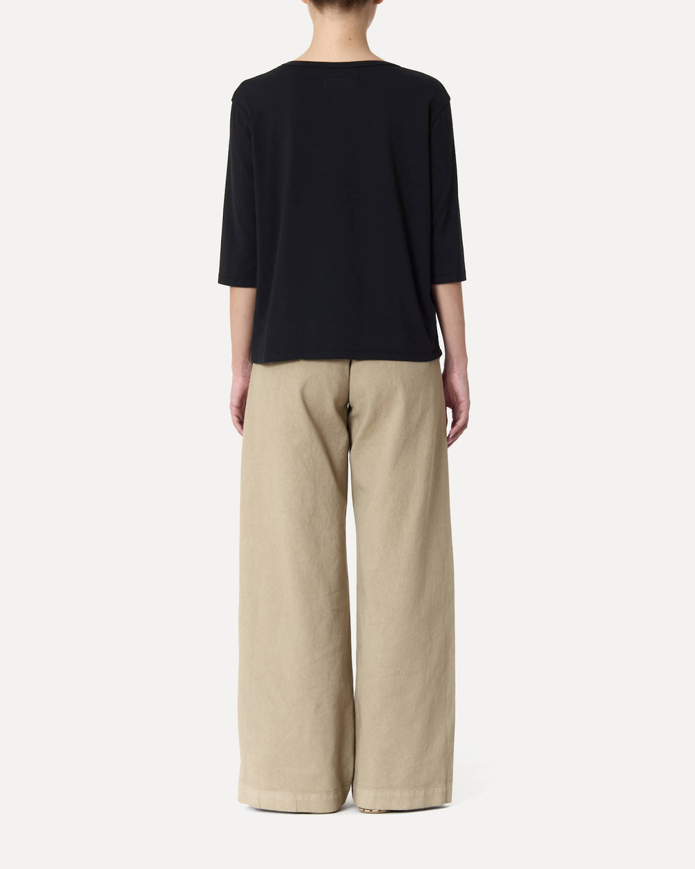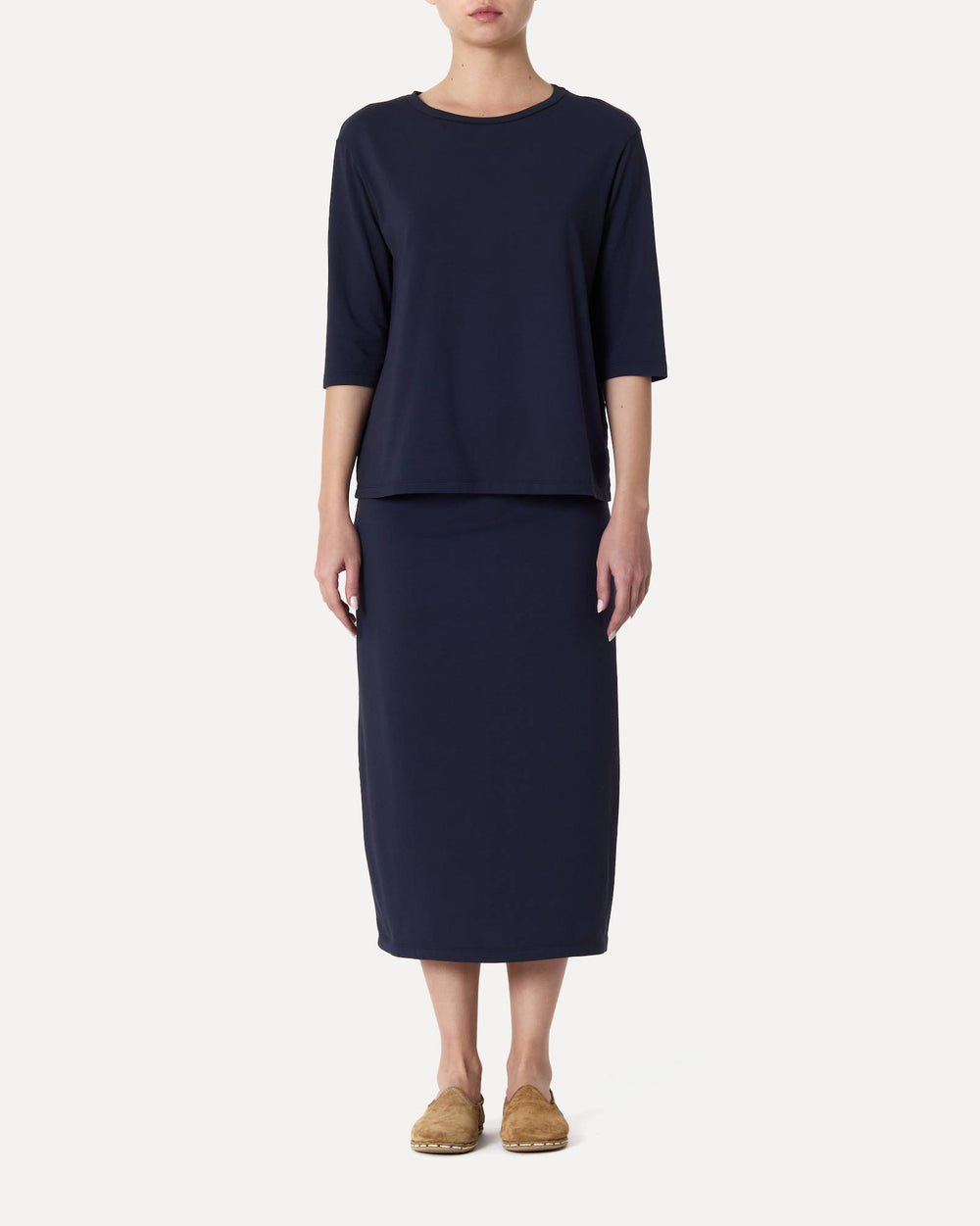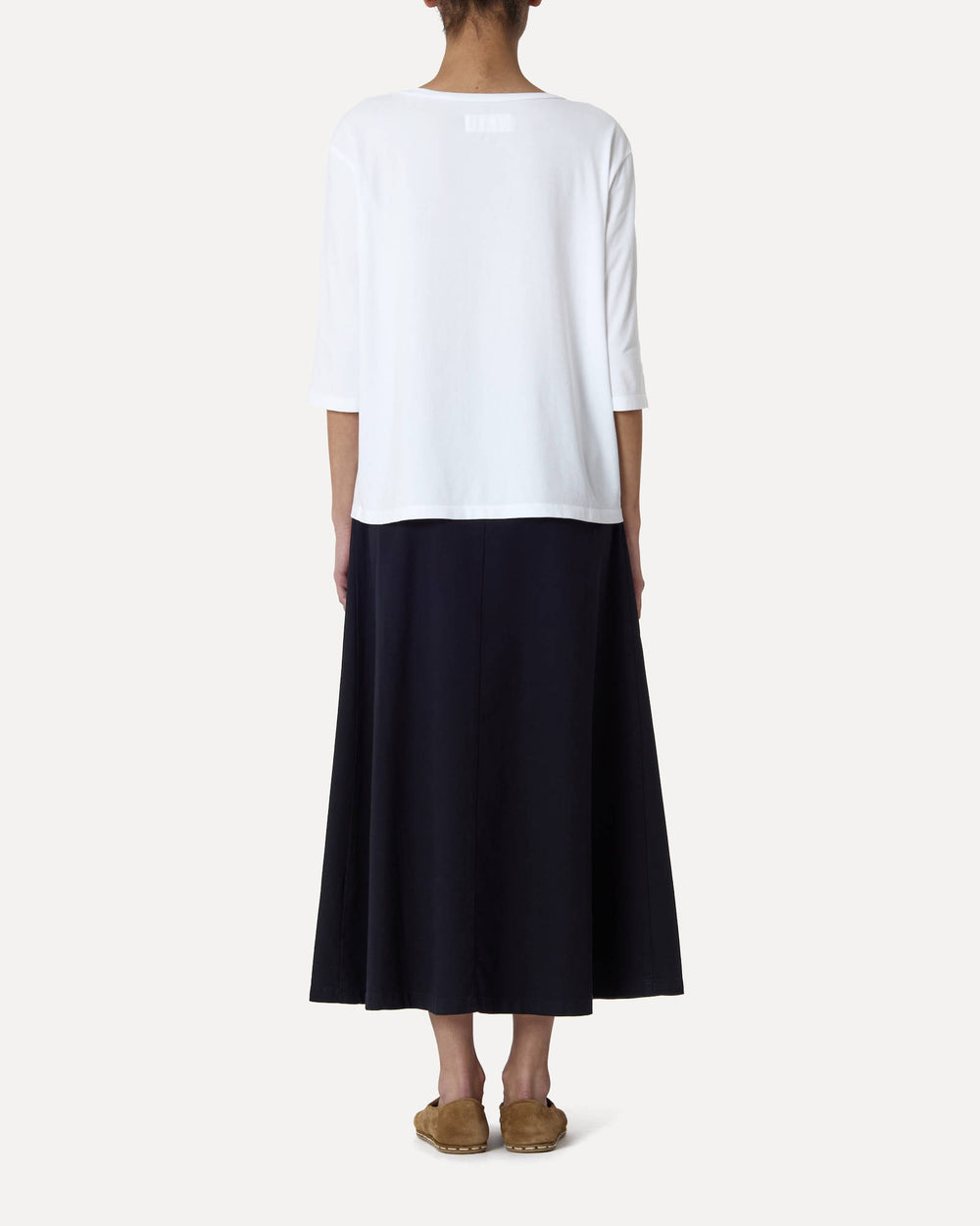 REGULAR FIT T-SHIRT WITH SLIGHTLY DROPPED SHOULDERS, BOAT NECK AND ¾ SLEEVES IN ELASTIC COTTON CREPE JERSEY
