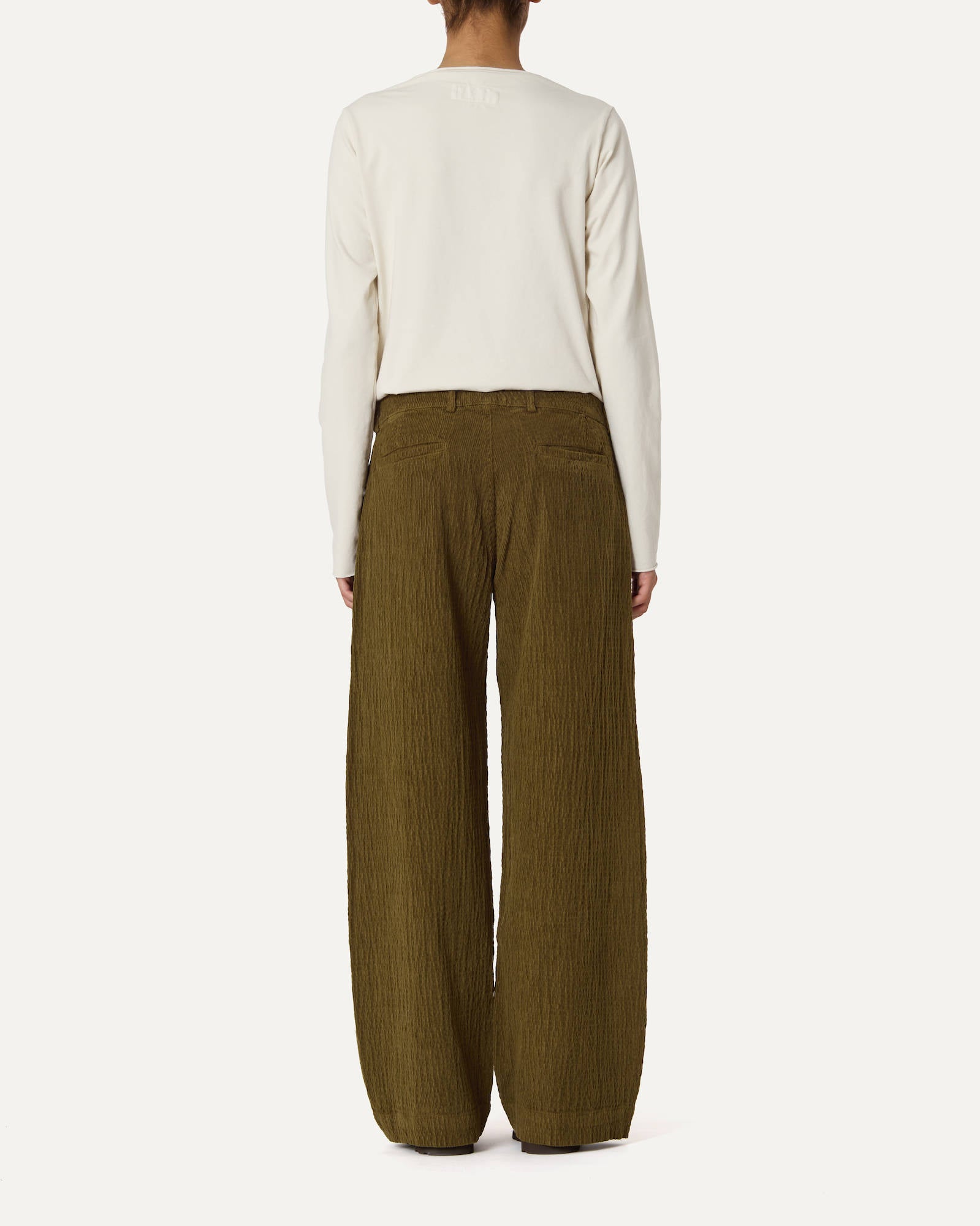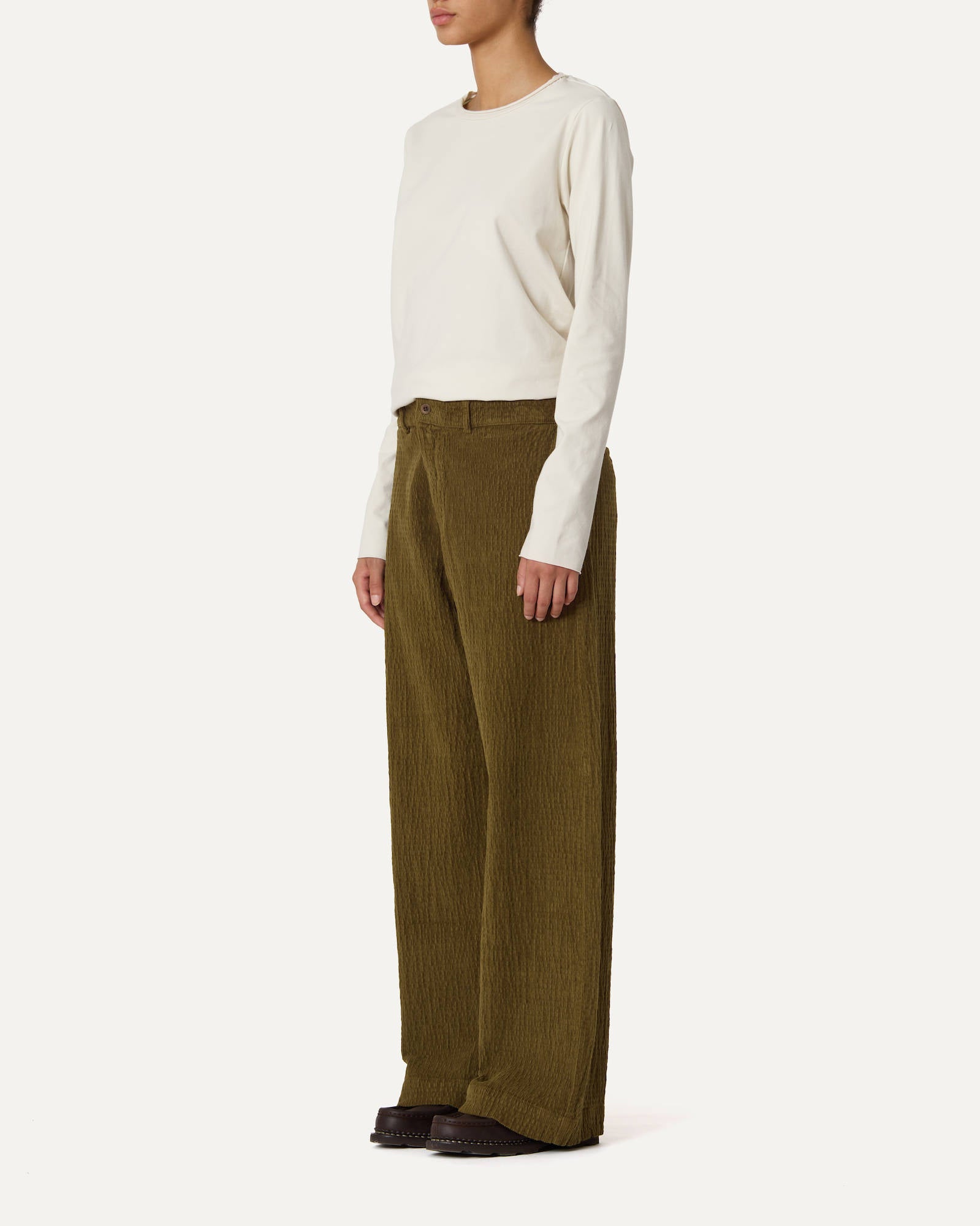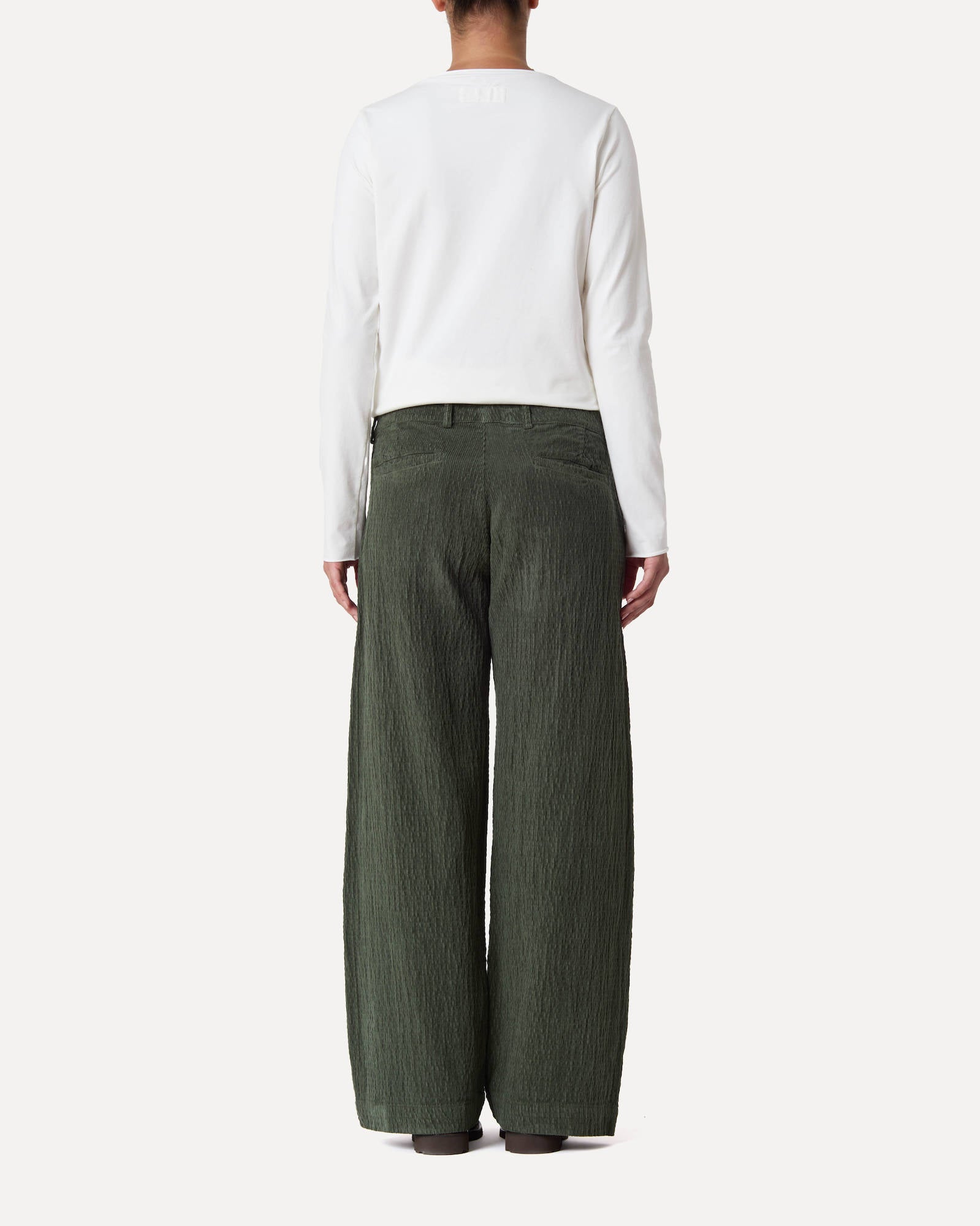 REGULAR-FIT TROUSERS WITH SIDE WELT POCKETS AND BUTTON CLOSURE AT THE WAIST IN CRINCKLED ELASTIC COTTON VELVET