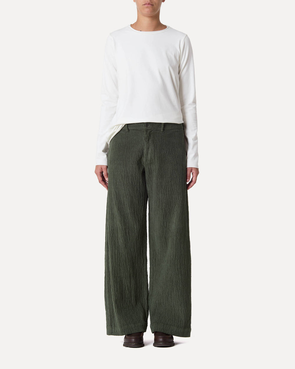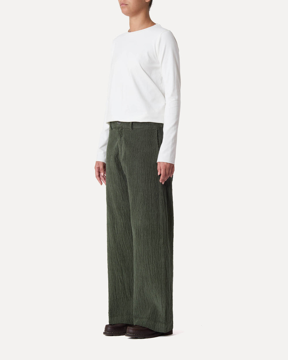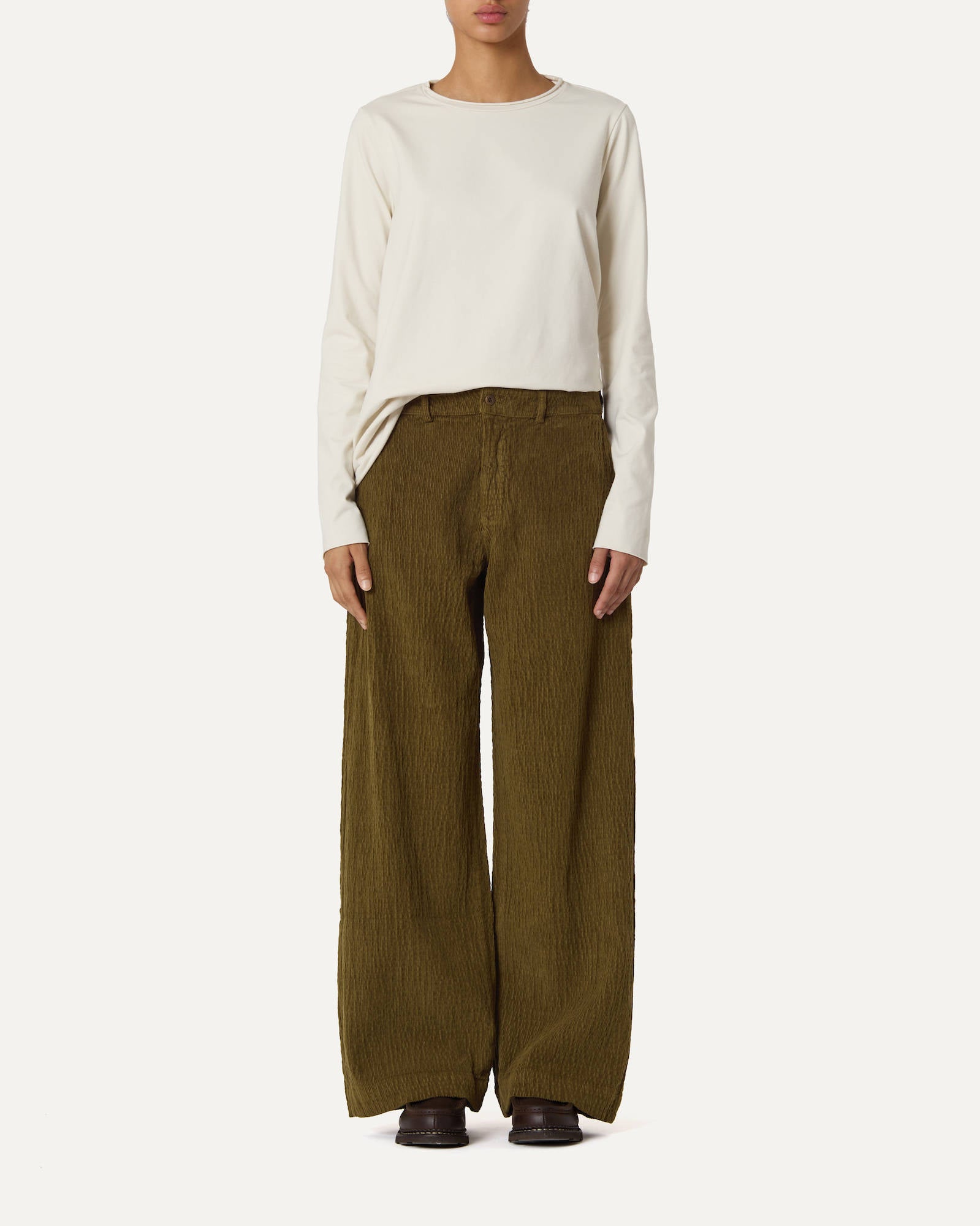 REGULAR-FIT TROUSERS WITH SIDE WELT POCKETS AND BUTTON CLOSURE AT THE WAIST IN CRINCKLED ELASTIC COTTON VELVET