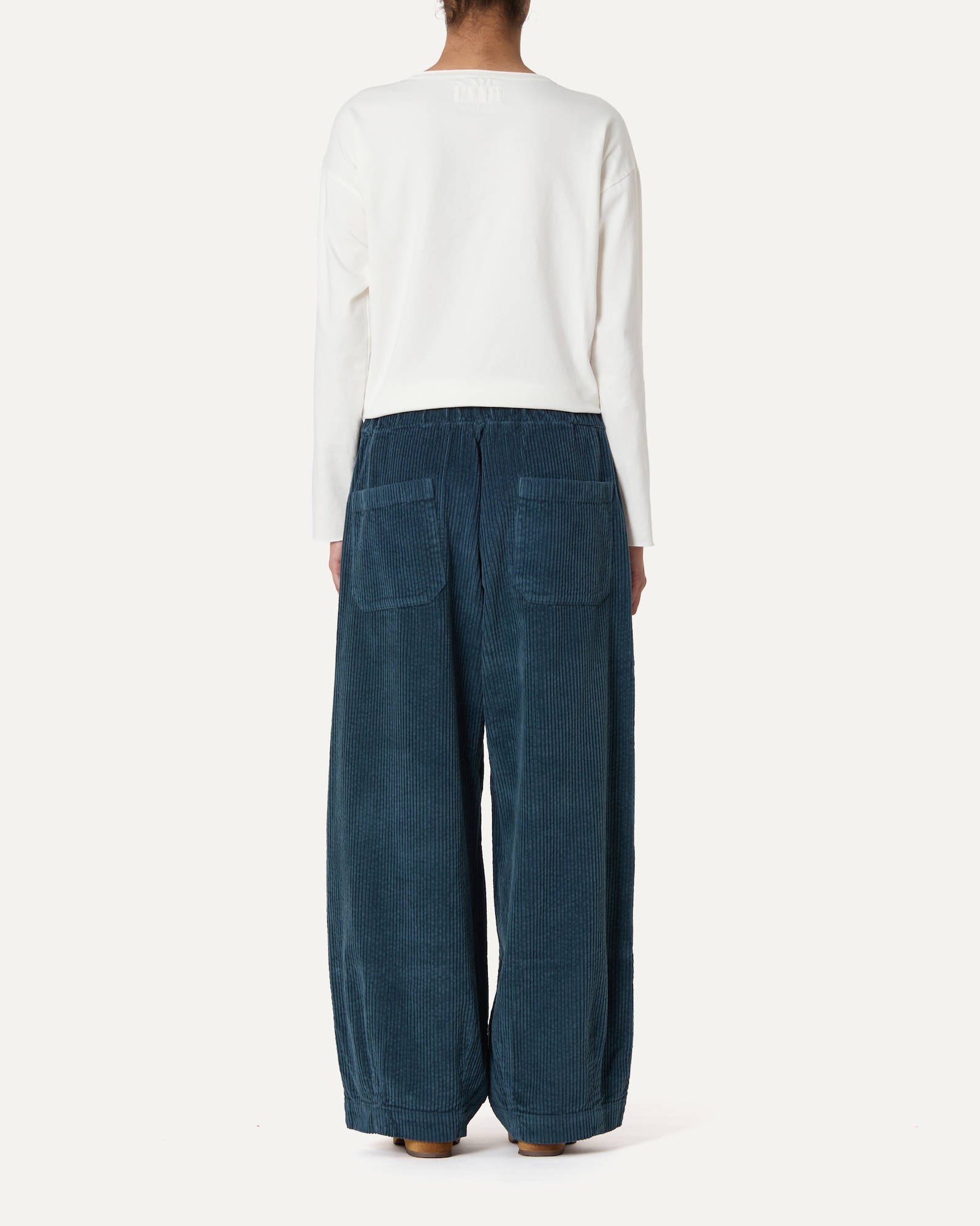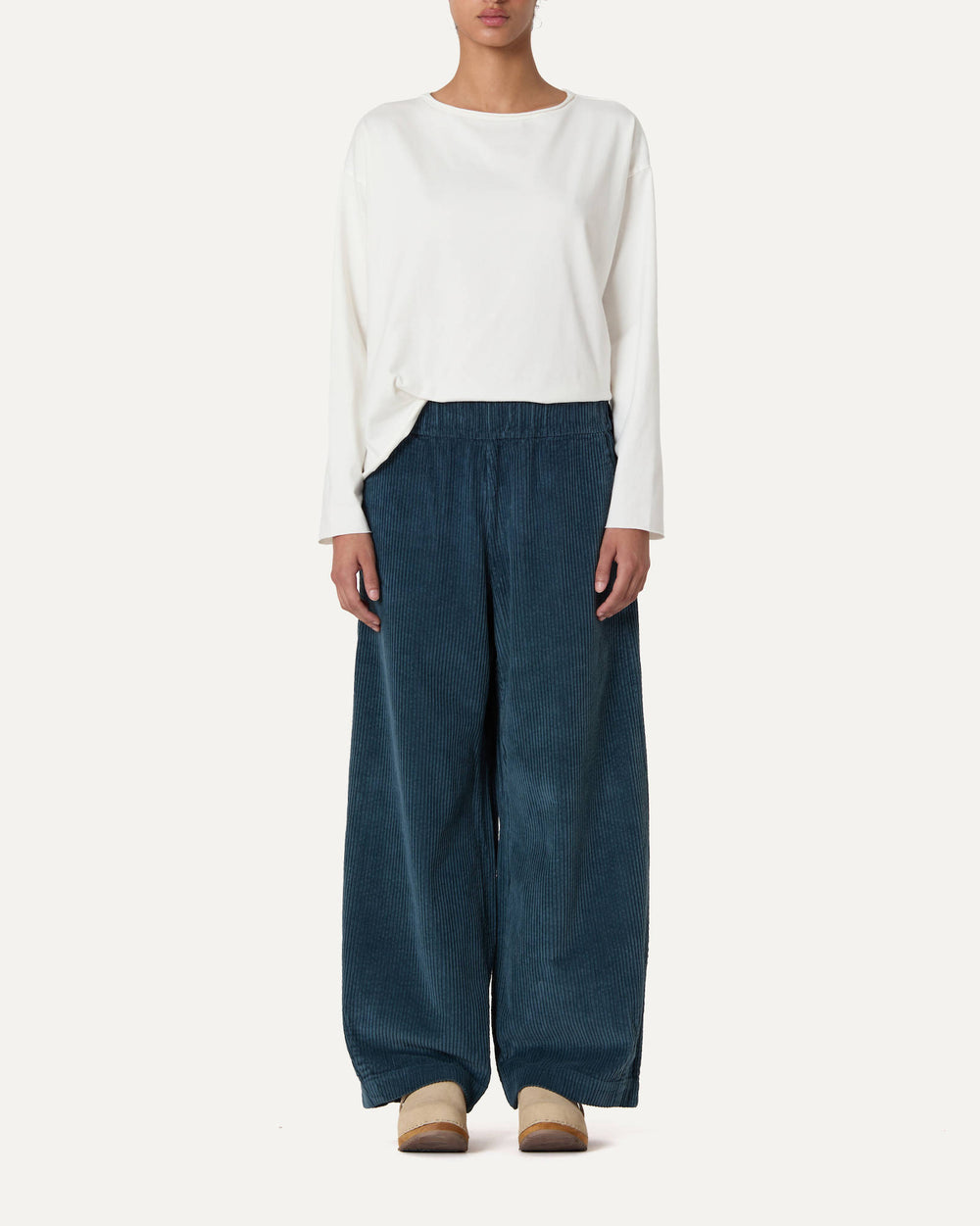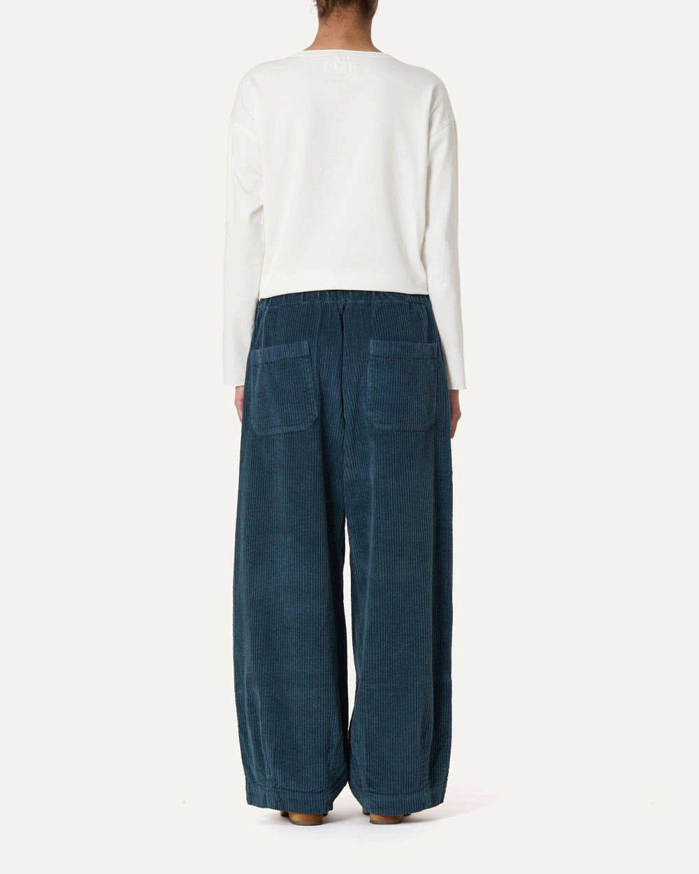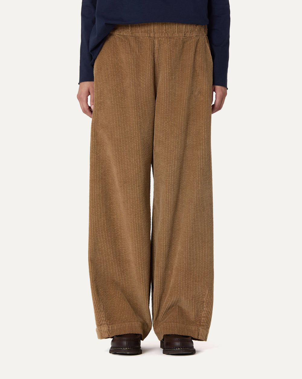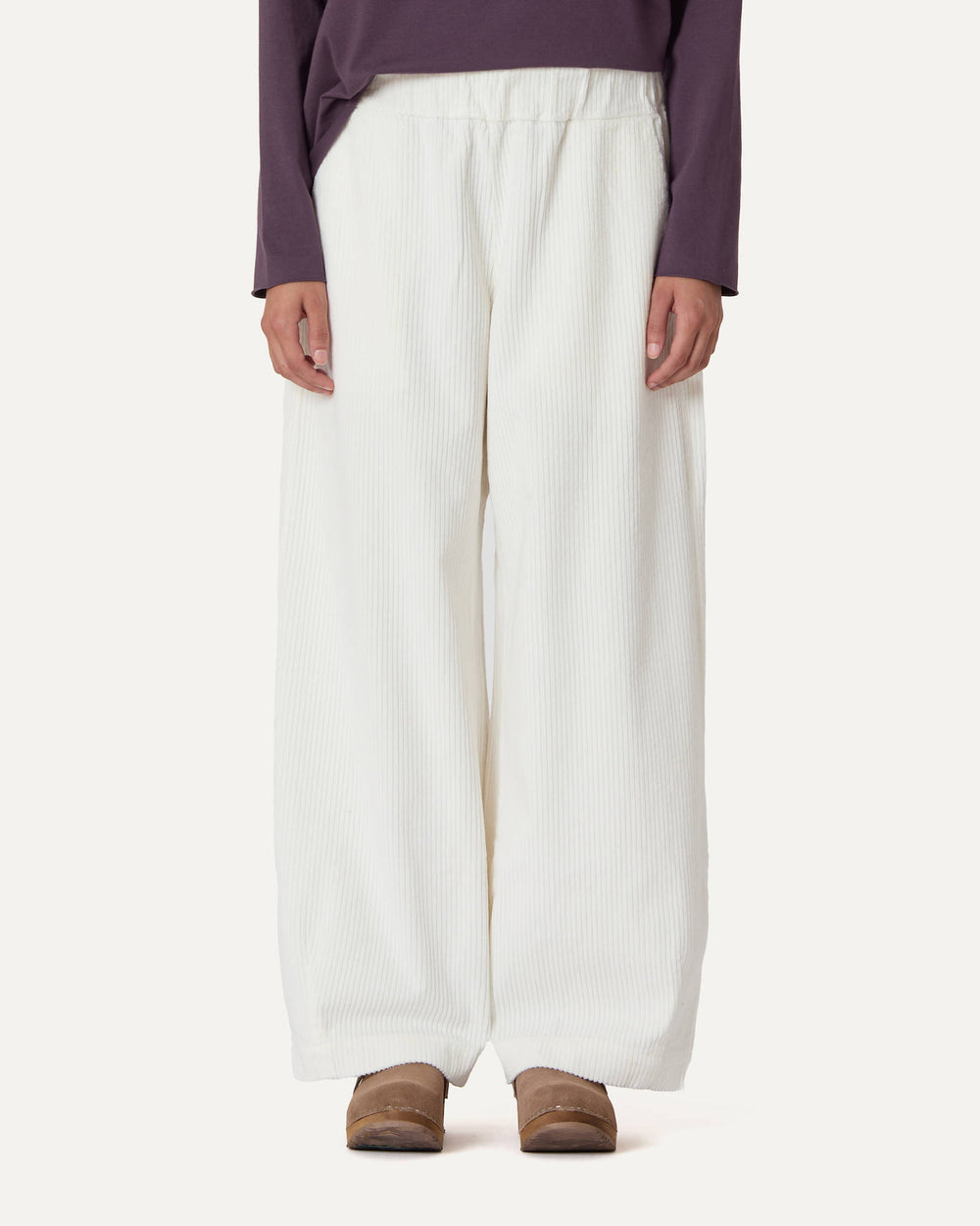 TROUSERS WITH ELASTICATED WAISTBAND, SIDE POCKETS, AND WIDE-LEG HEM IN COTTON CORDUROY