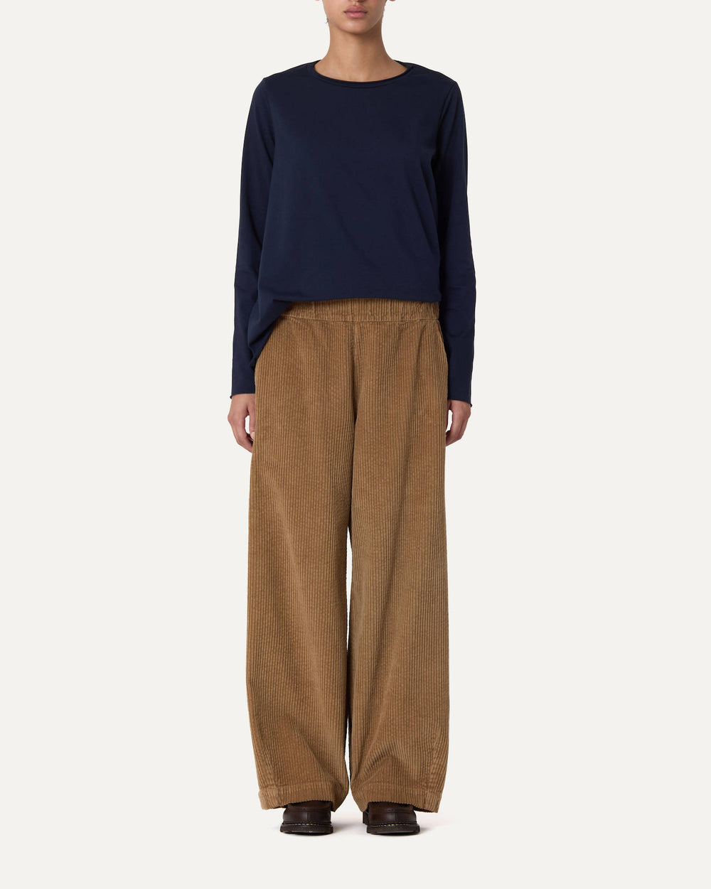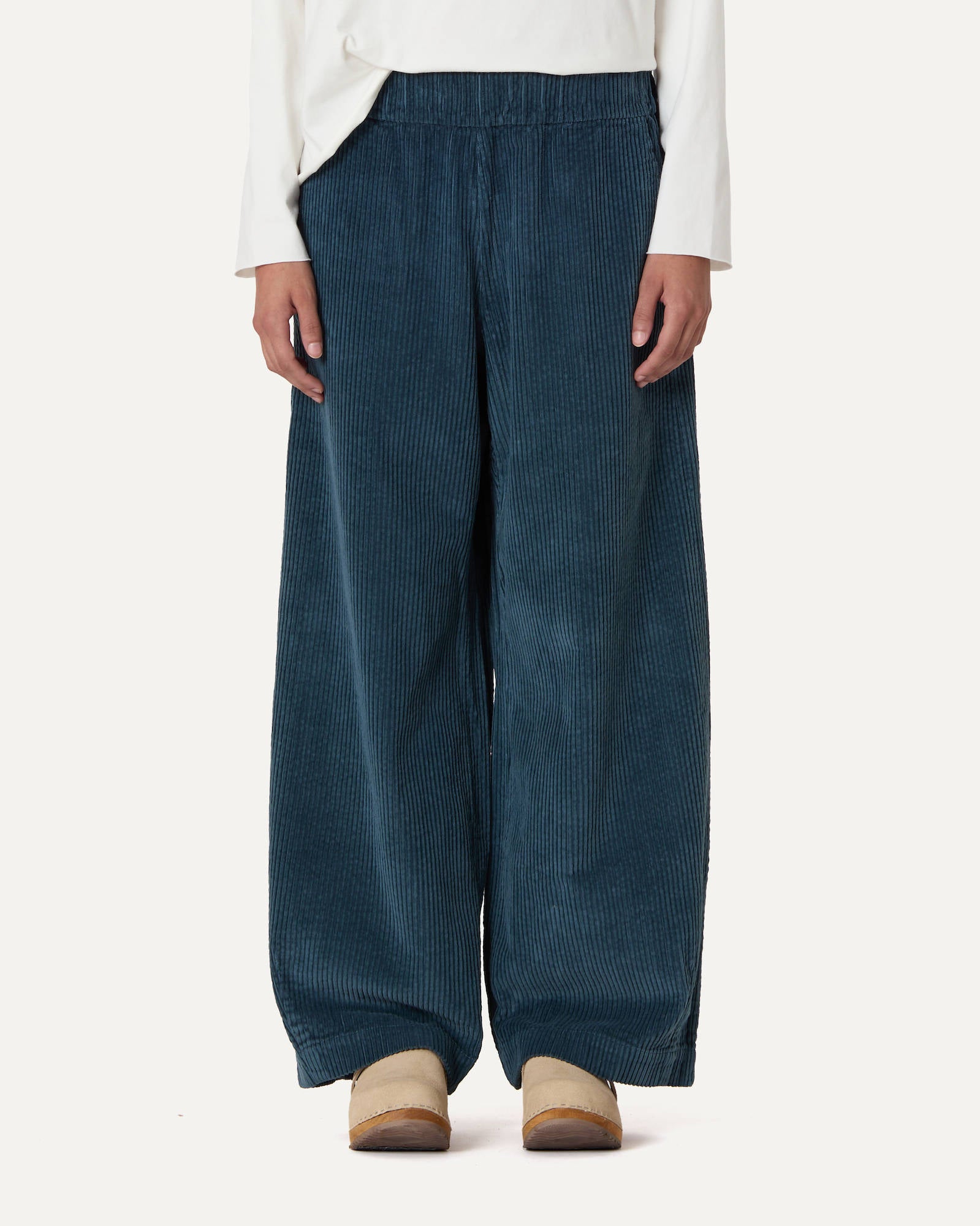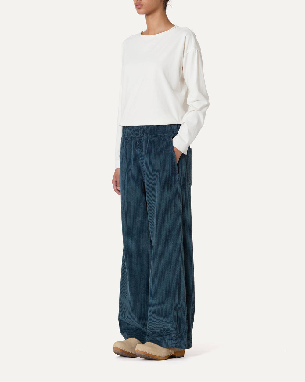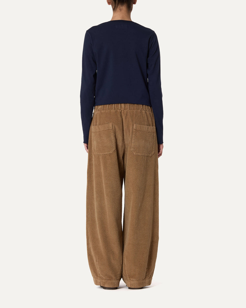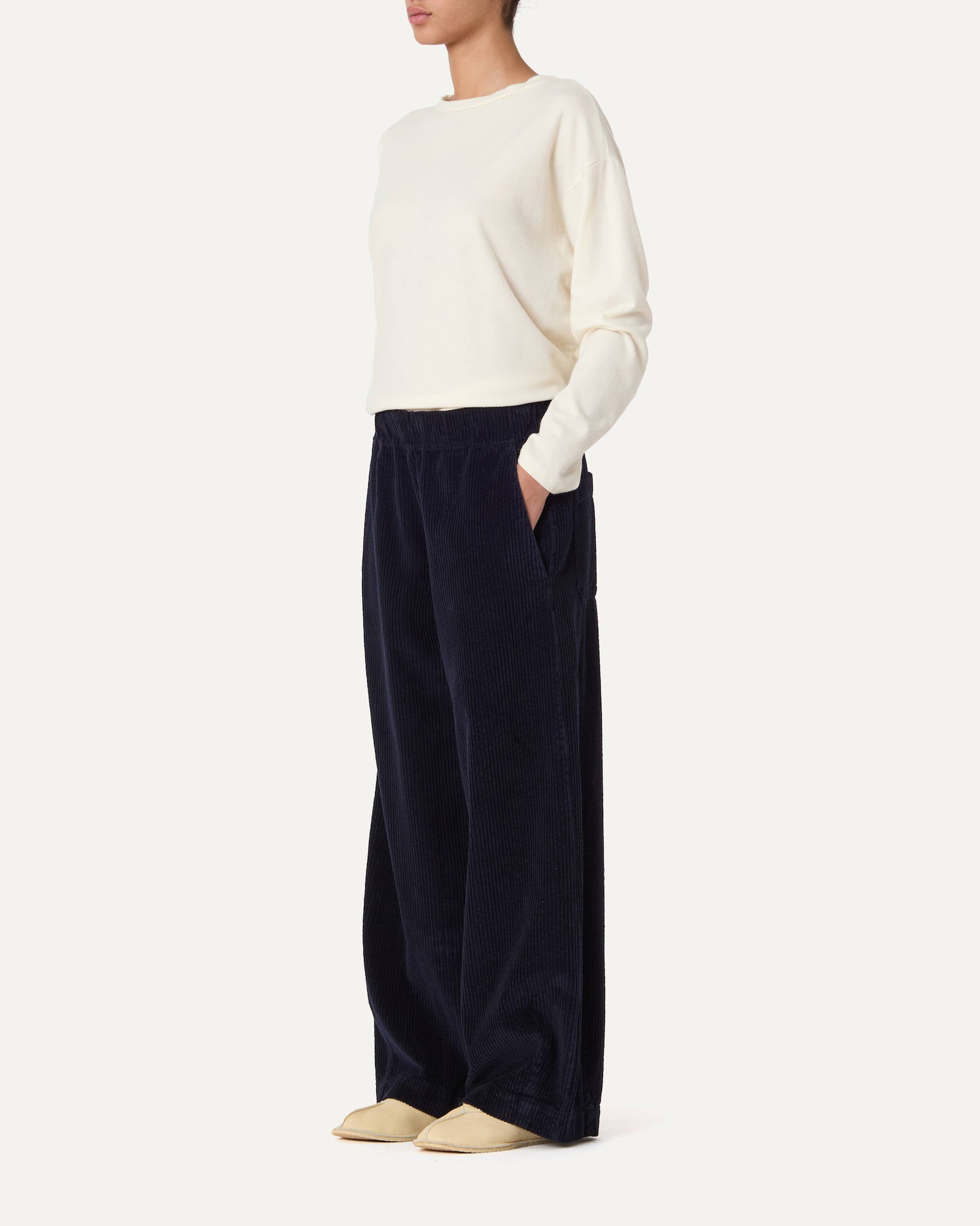 TROUSERS WITH ELASTICATED WAISTBAND, SIDE POCKETS, AND WIDE-LEG HEM IN COTTON CORDUROY