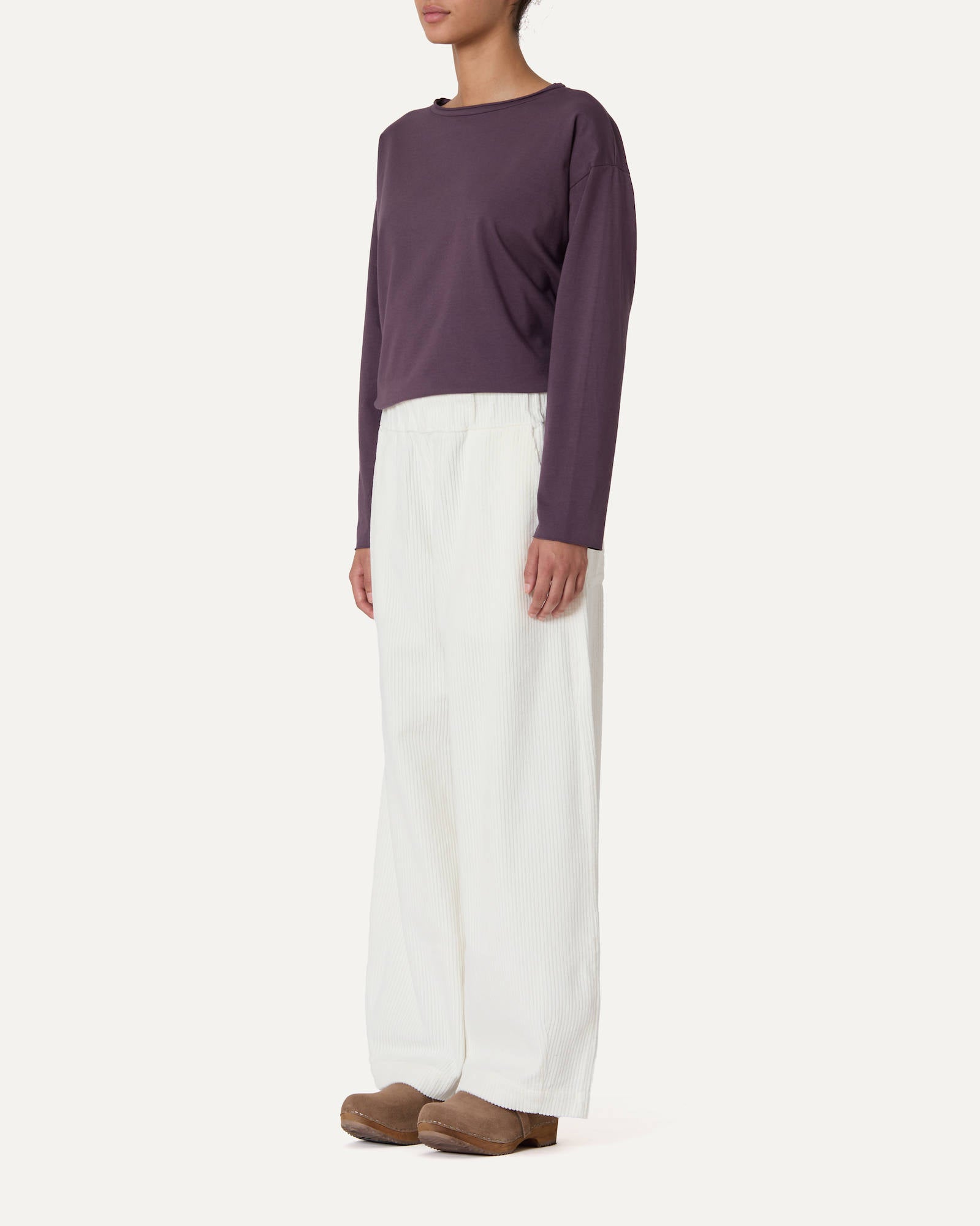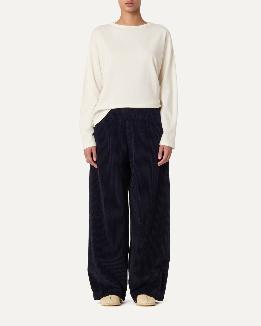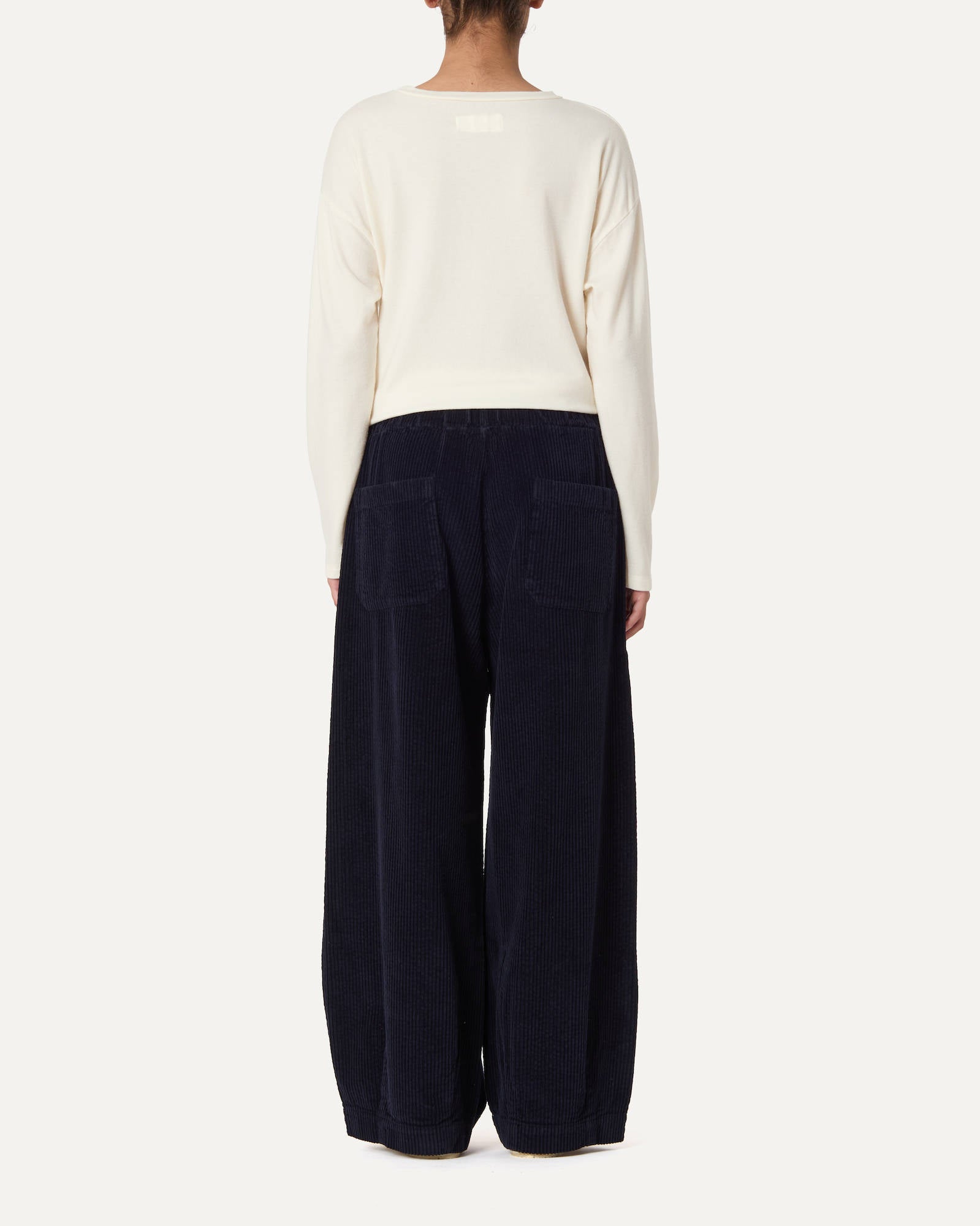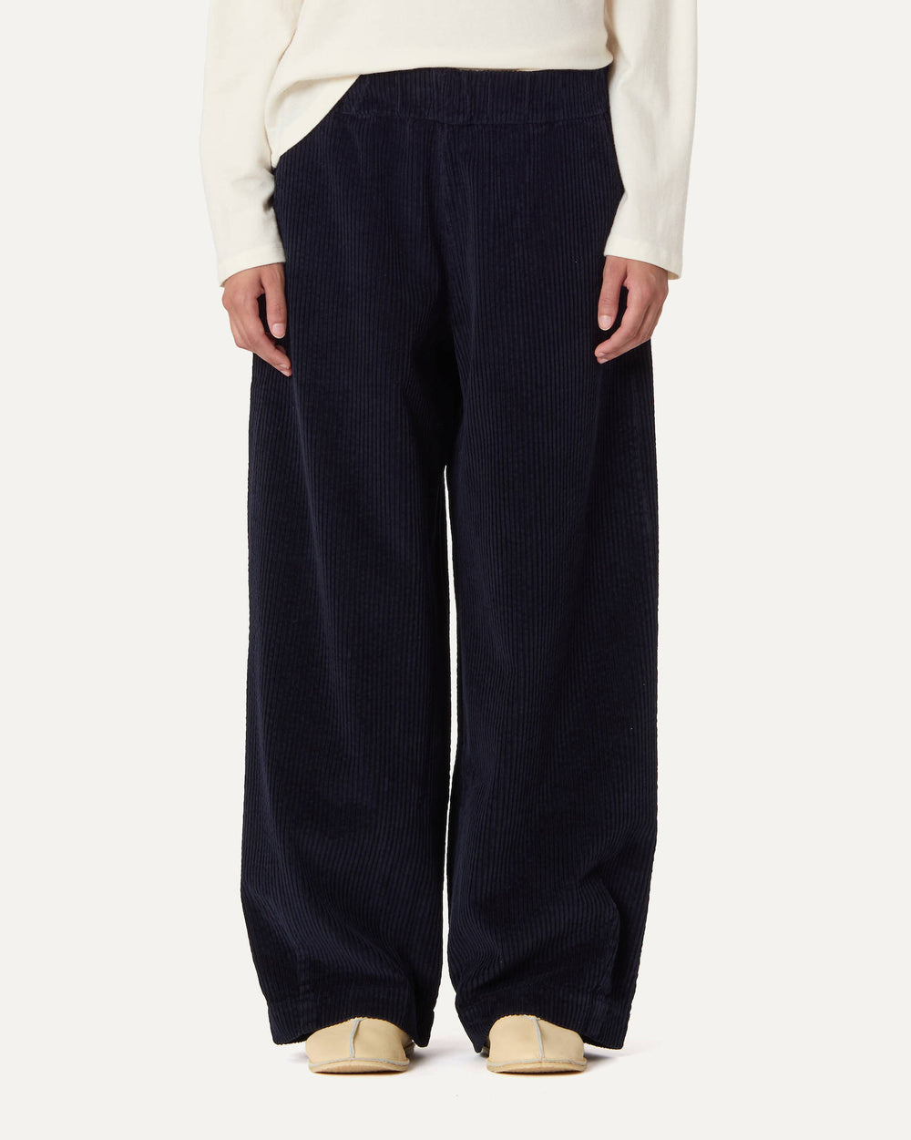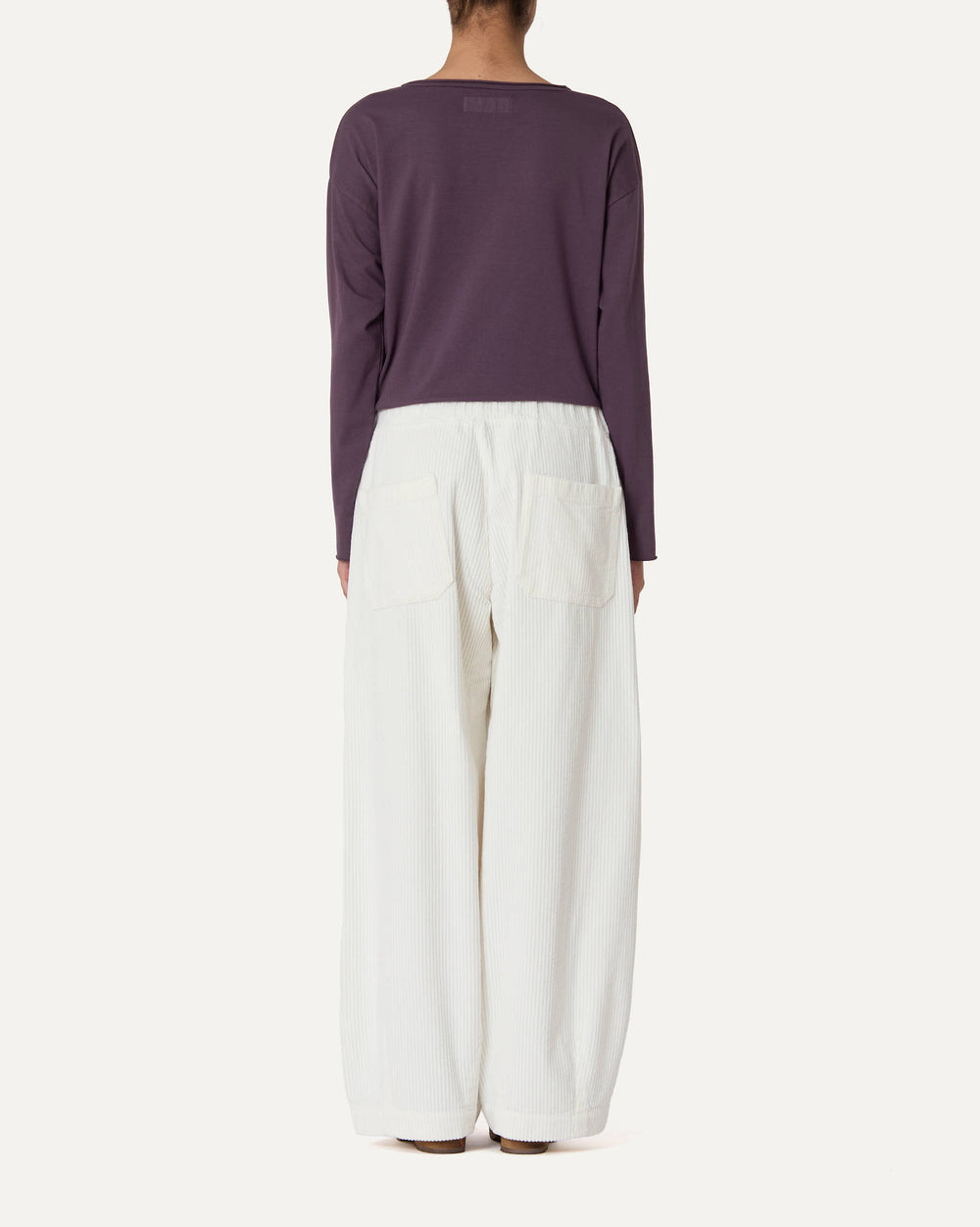 TROUSERS WITH ELASTICATED WAISTBAND, SIDE POCKETS, AND WIDE-LEG HEM IN COTTON CORDUROY
