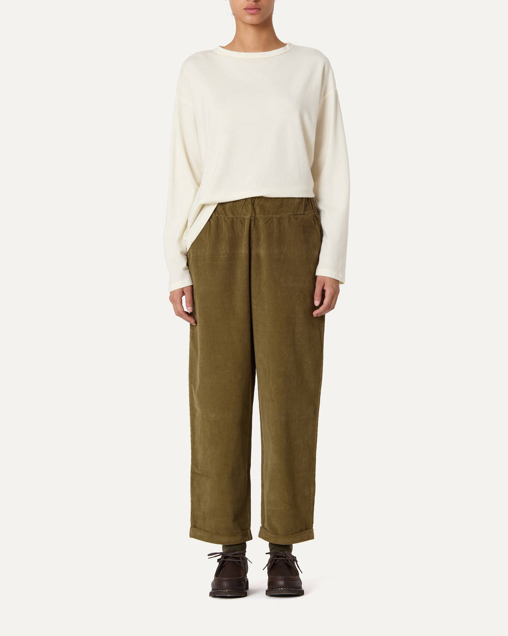 PULL-ON CUFFED COTTON NEEDLECORD TROUSER