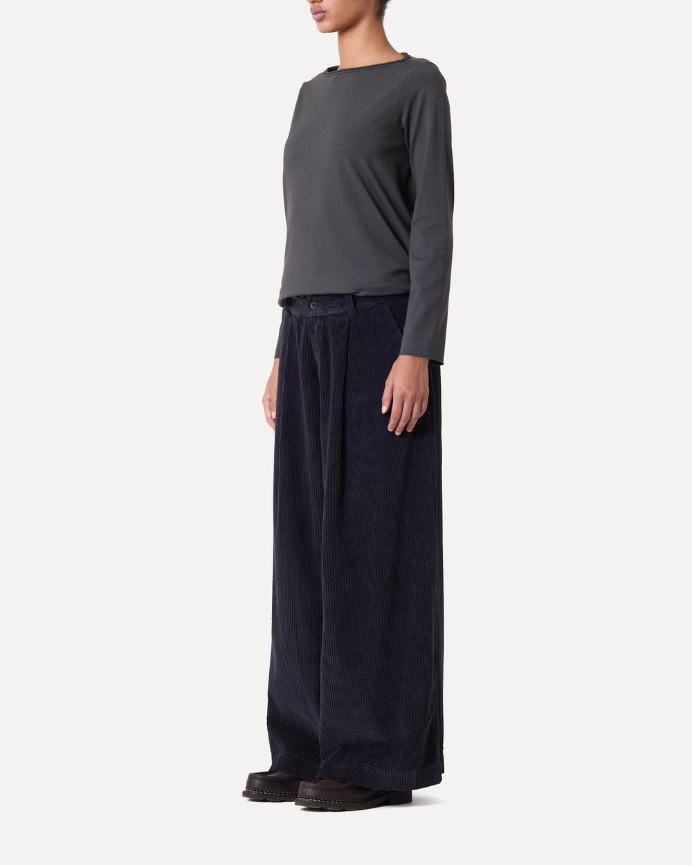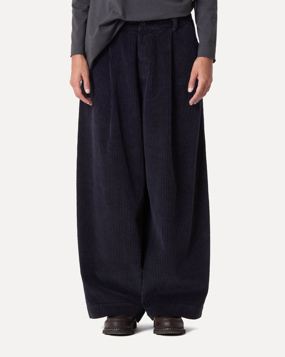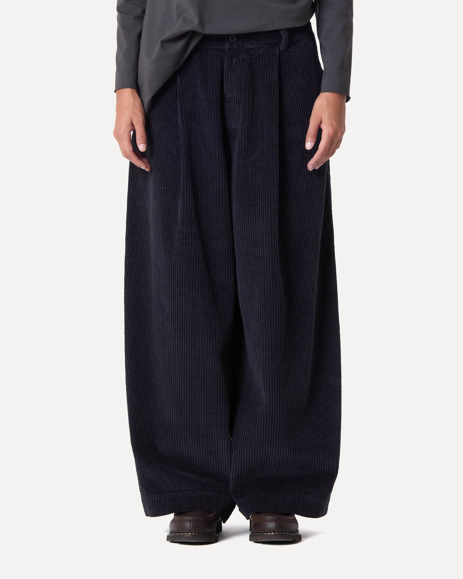 WIDE-LEG TROUSERS WITH A SLIGHTLY BALLOONED SHAPE, PLEATS, AND A BUTTON AT THE WAIST IN COTTON CORDUROY