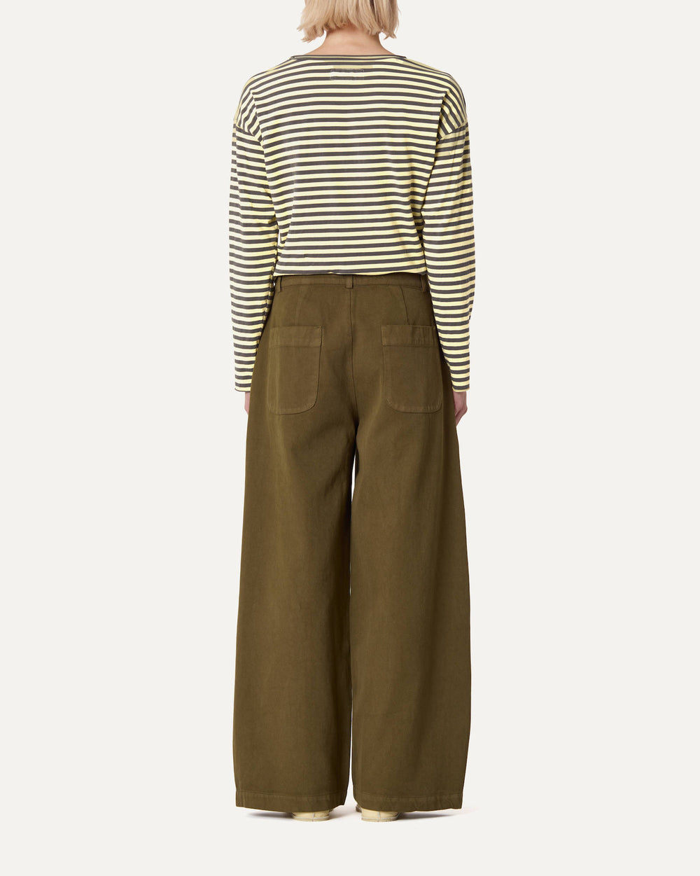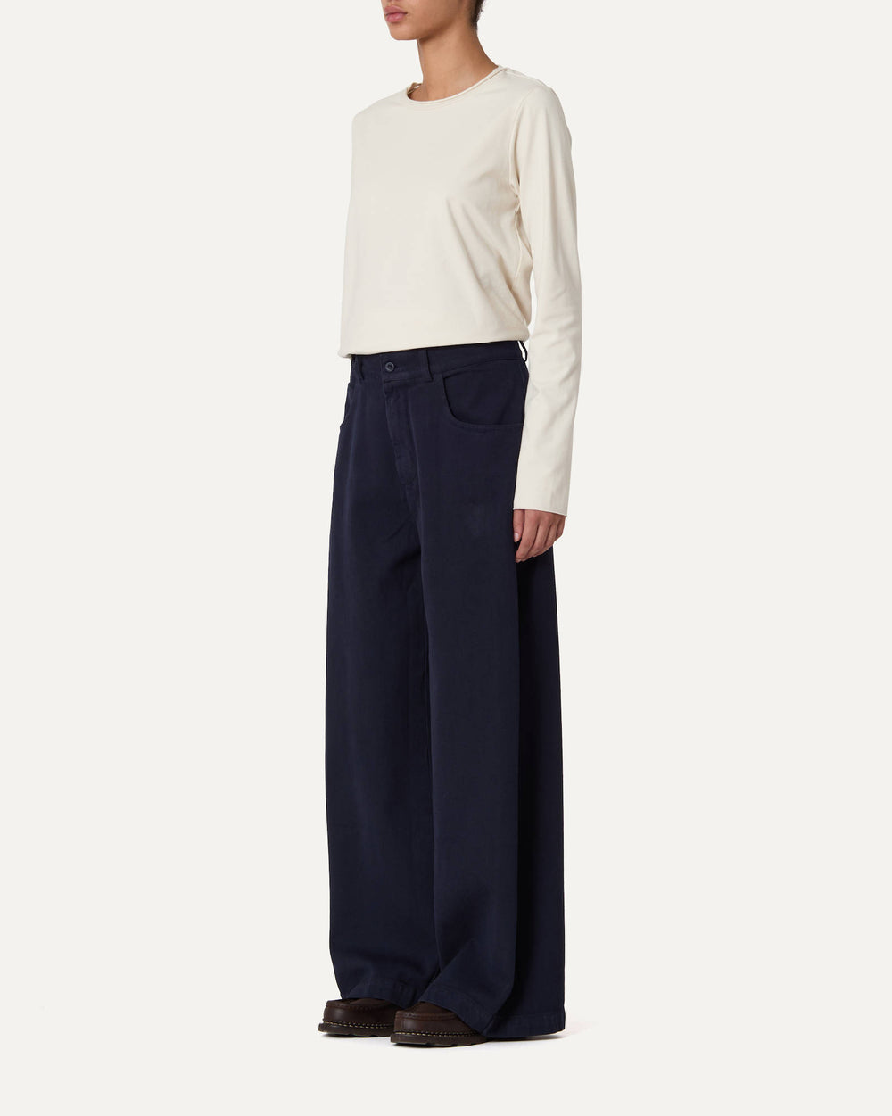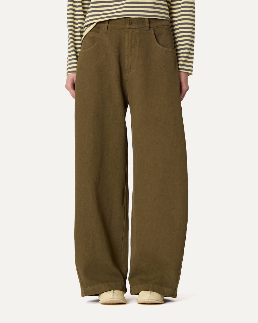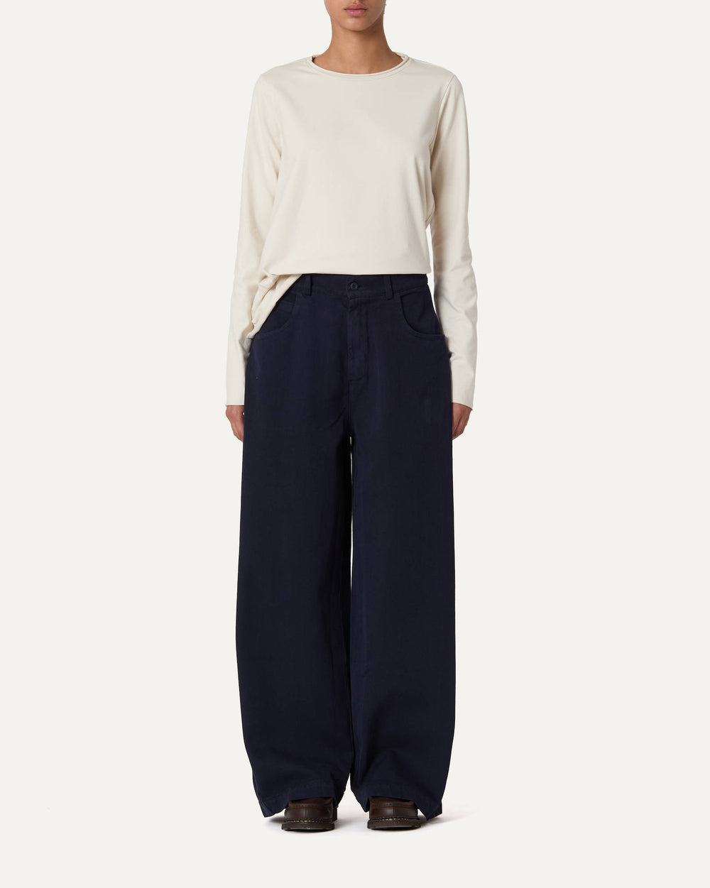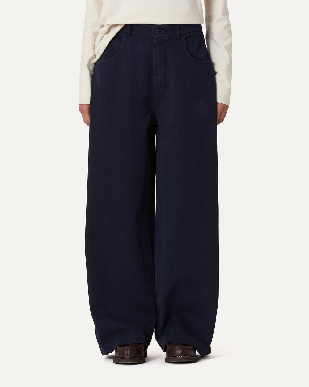 SLIGHTLY BALLOON-SHAPED TROUSERS WITH FRONT BUTTON CLOSURE AND SIDE POCKETS IN COTTON BULL
