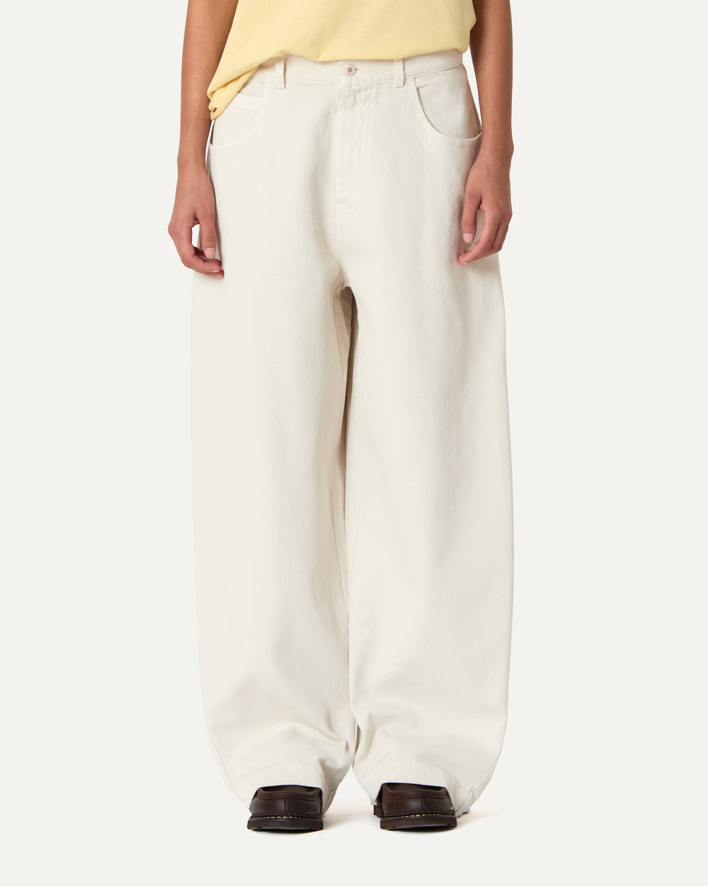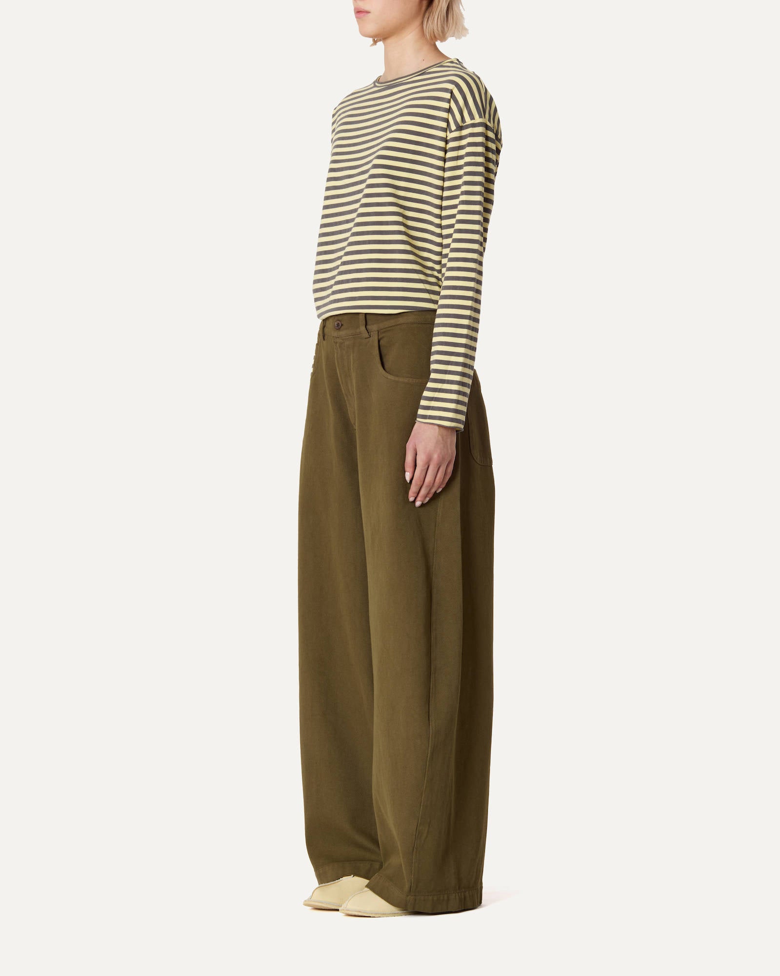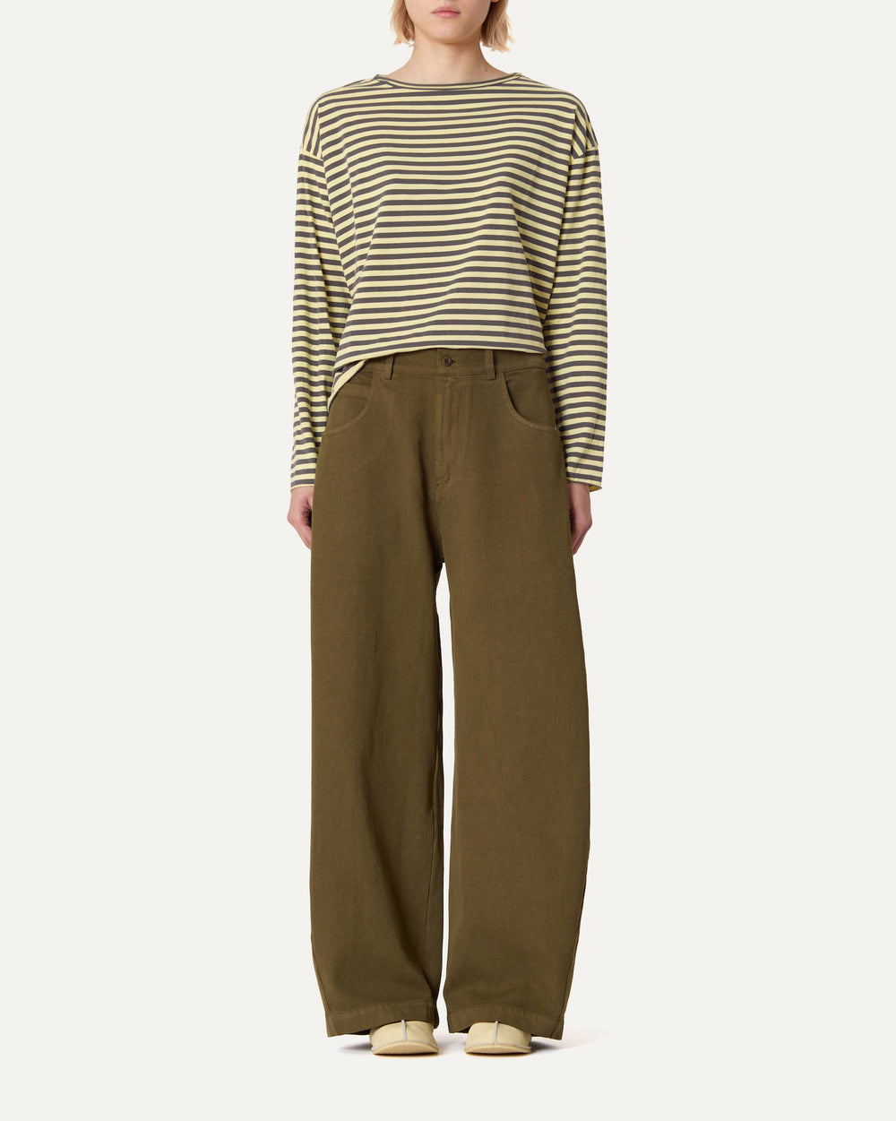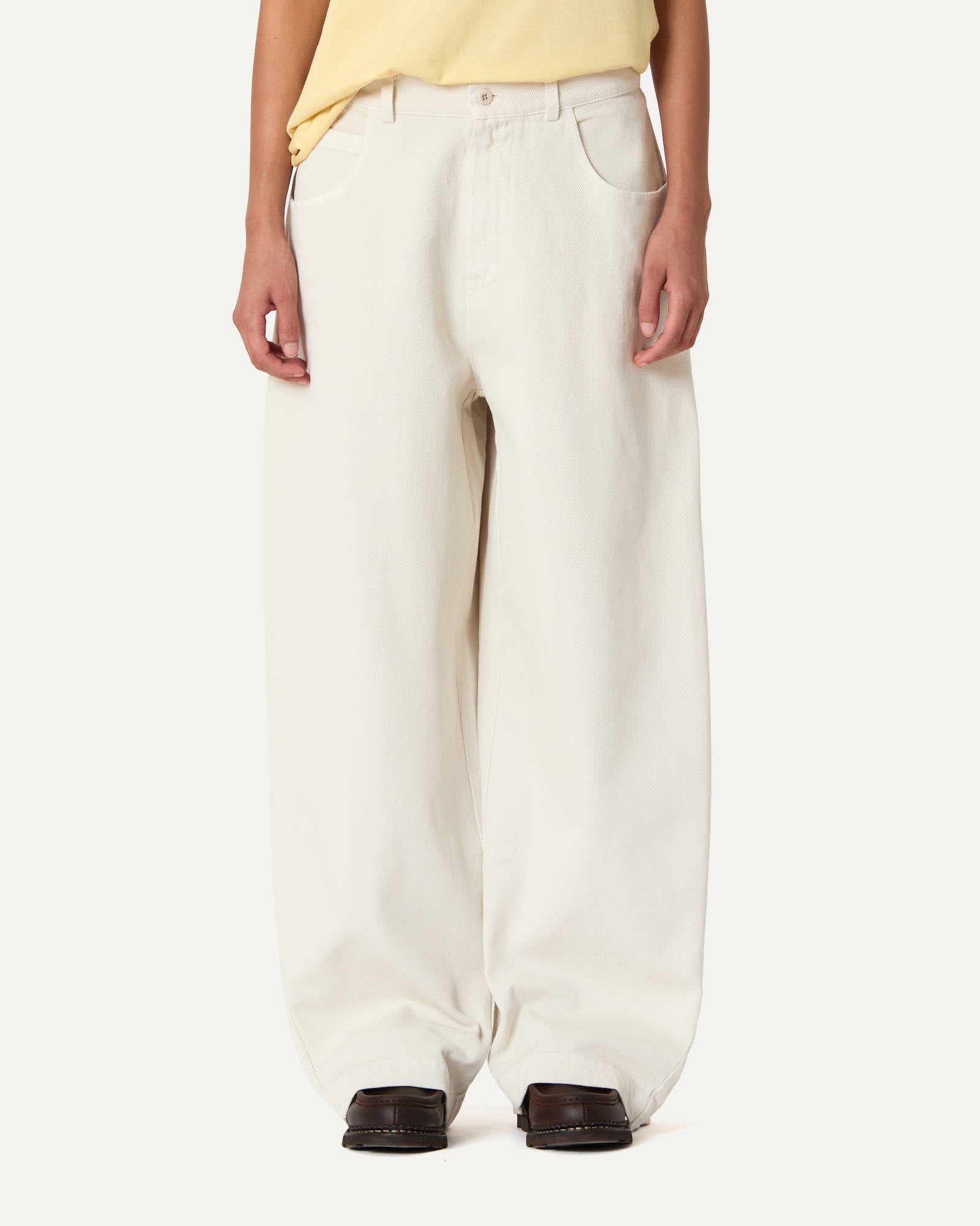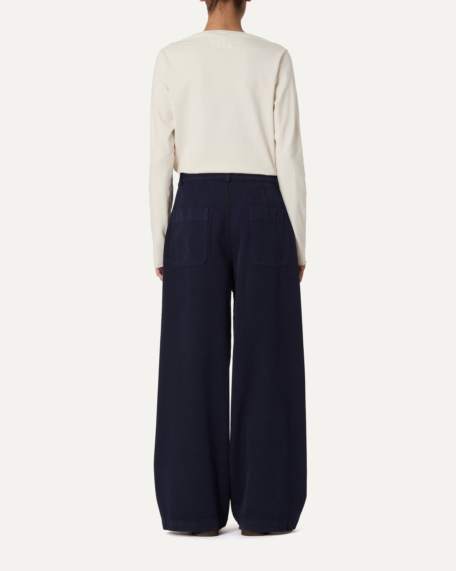 SLIGHTLY BALLOON-SHAPED TROUSERS WITH FRONT BUTTON CLOSURE AND SIDE POCKETS IN COTTON BULL