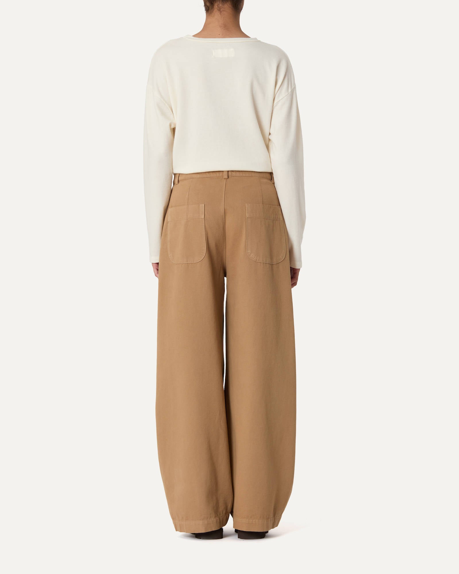 SLIGHTLY BALLOON-SHAPED TROUSERS WITH FRONT BUTTON CLOSURE AND SIDE POCKETS IN PEACH-HAND COTTON DRILL